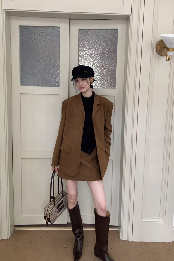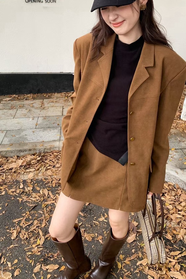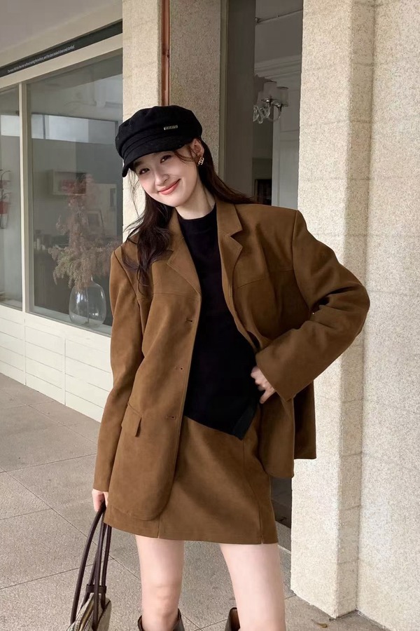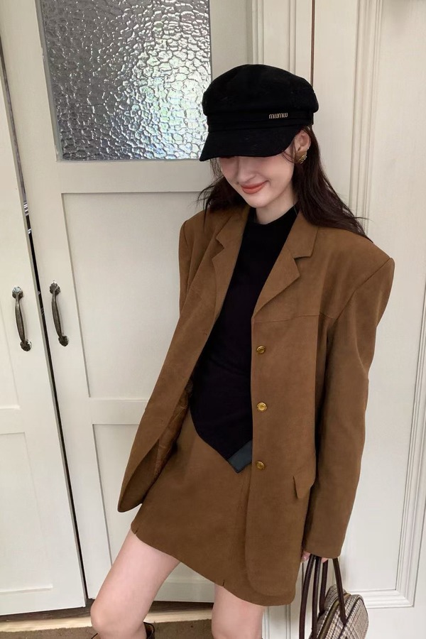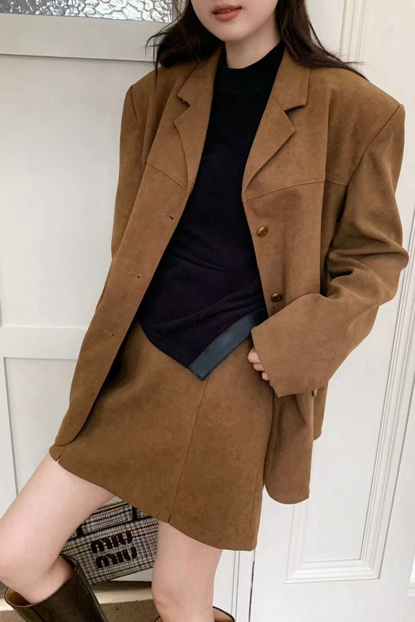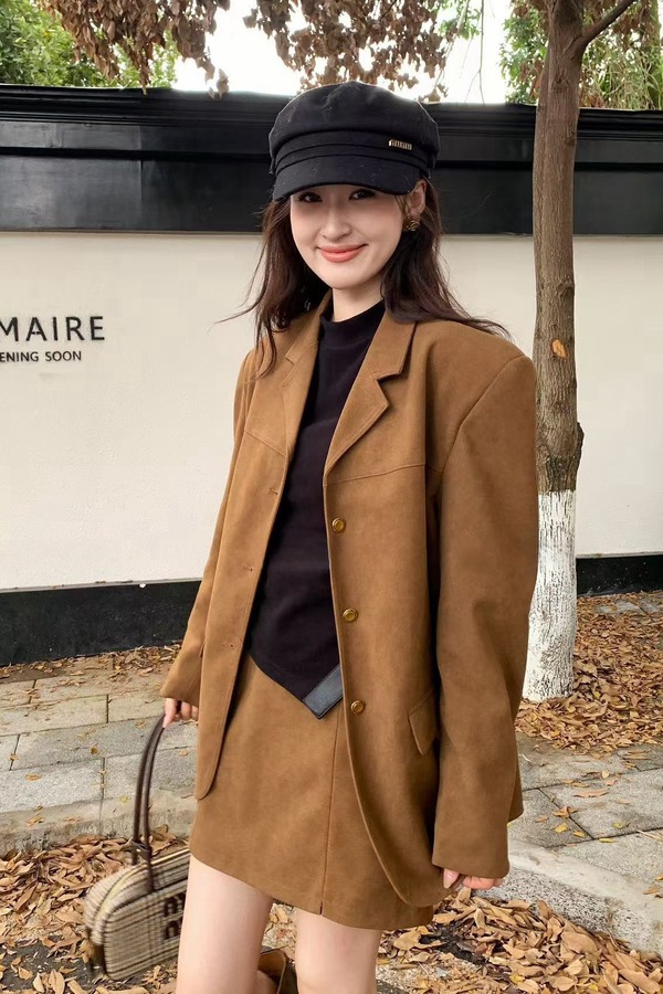 Kai & Kiera 经典棕色气质通勤西装半裙套装 21627