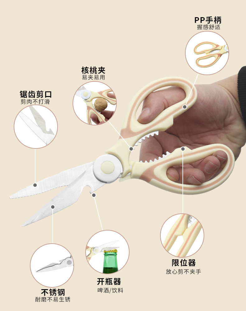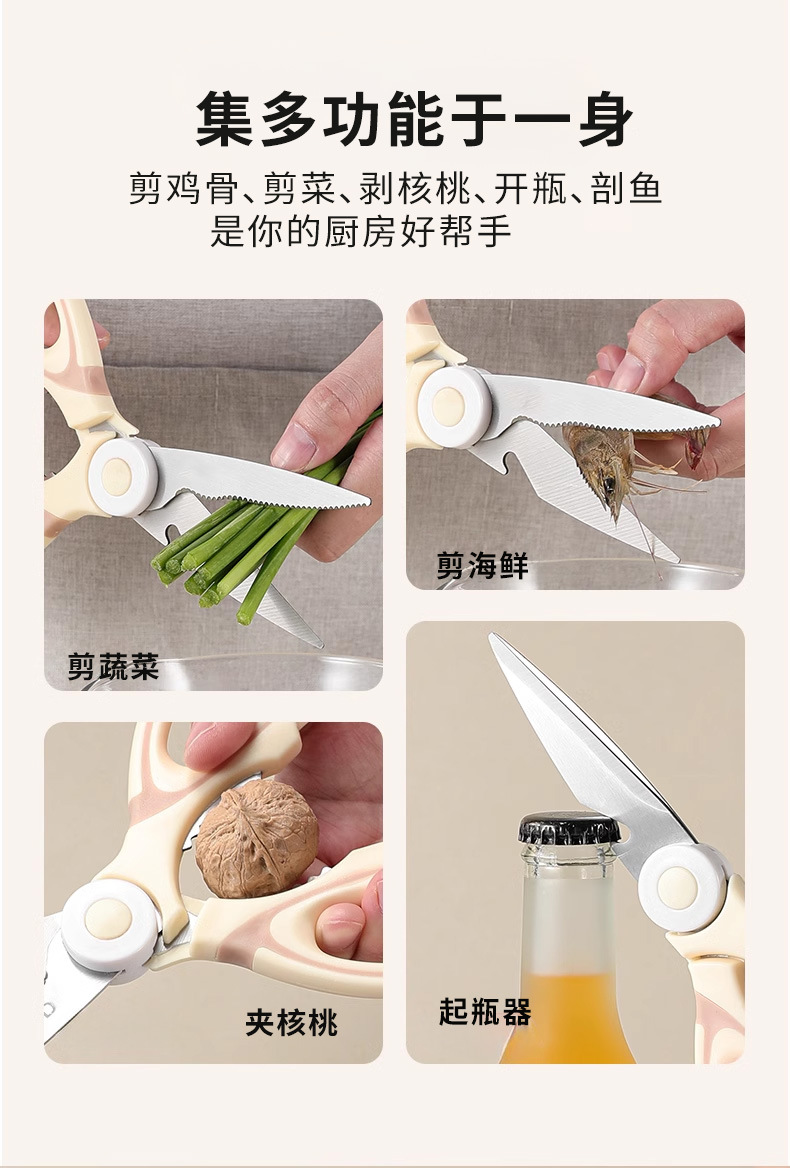 「一剪多用!9.9到手三件套」熊猫剪家用锋利不锈钢剪骨厨房用品带剪套多功能熊猫剪