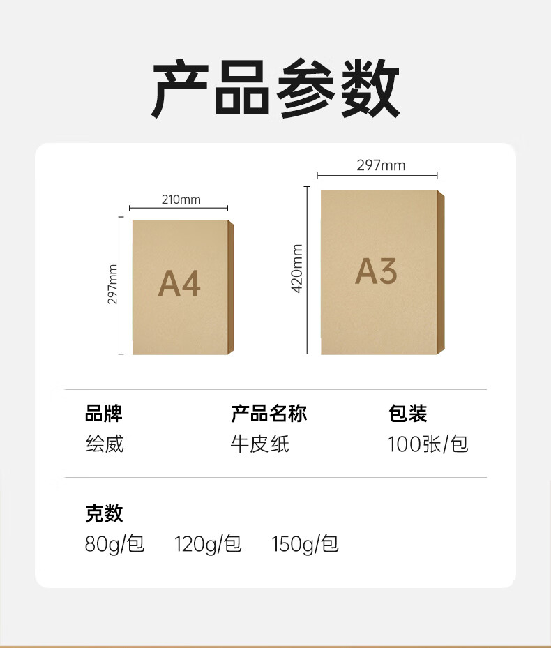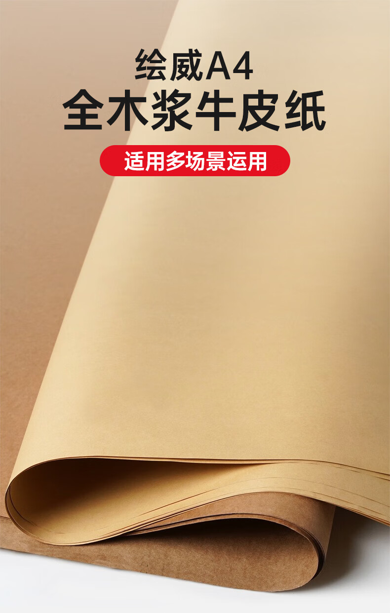 绘威A4牛皮纸80g 牛皮纸封面牛皮打印纸 凭证封面纸 牛皮卡纸绘图绘画纸 100张/包