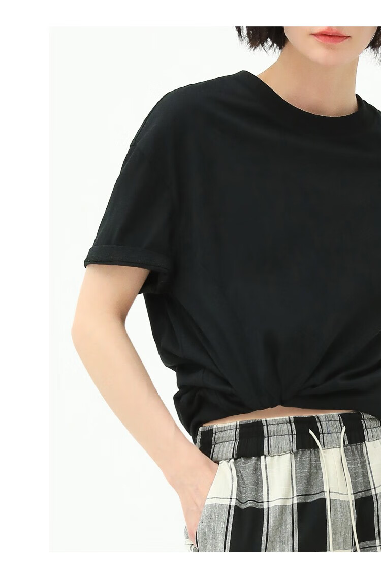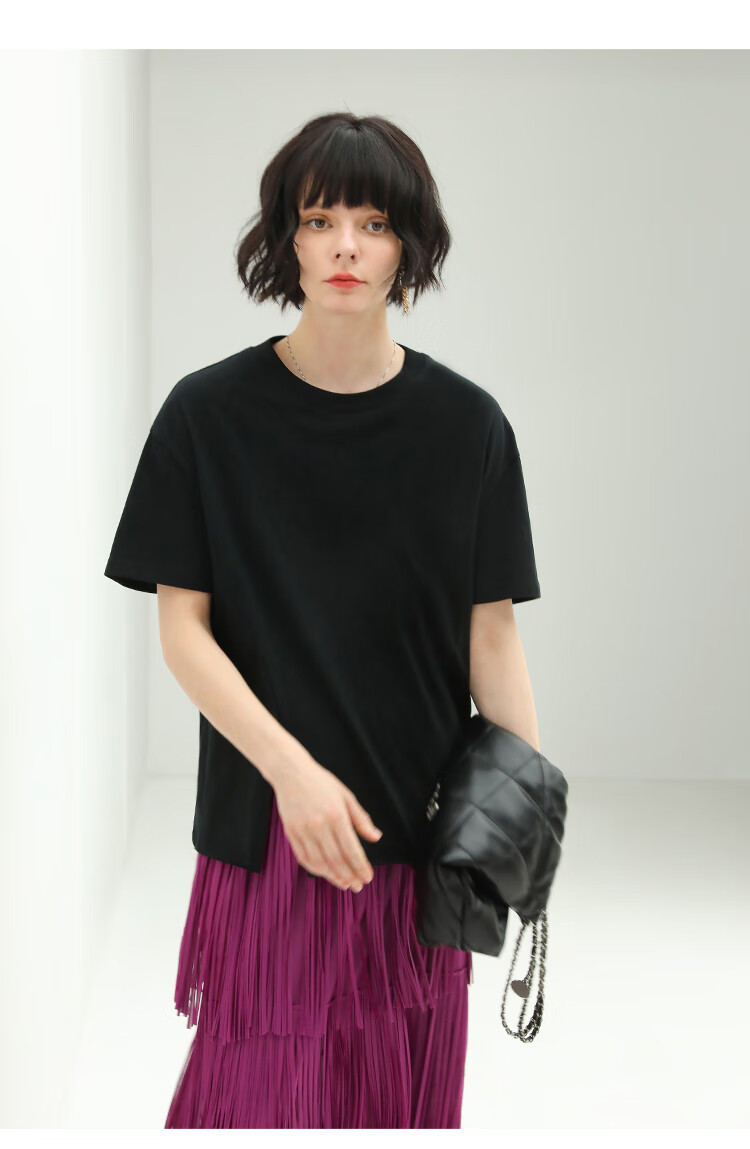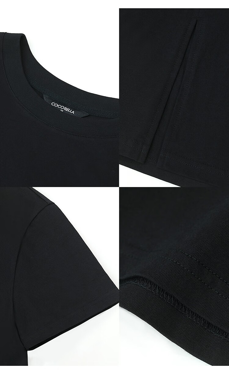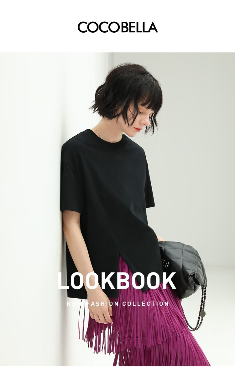 COCOBELLA设计感侧开叉甜酷短袖T恤女休闲圆领半袖NTS3