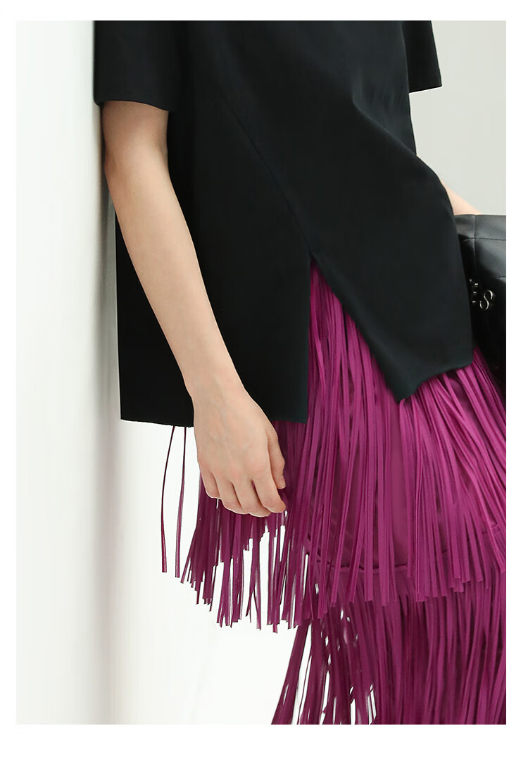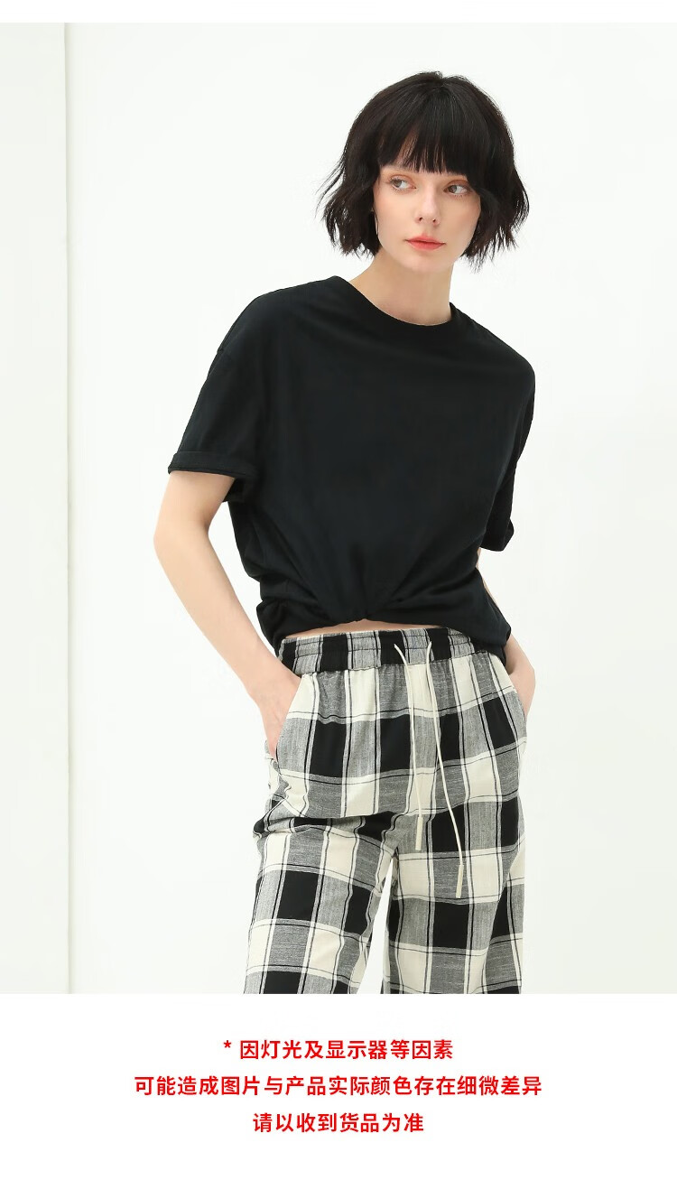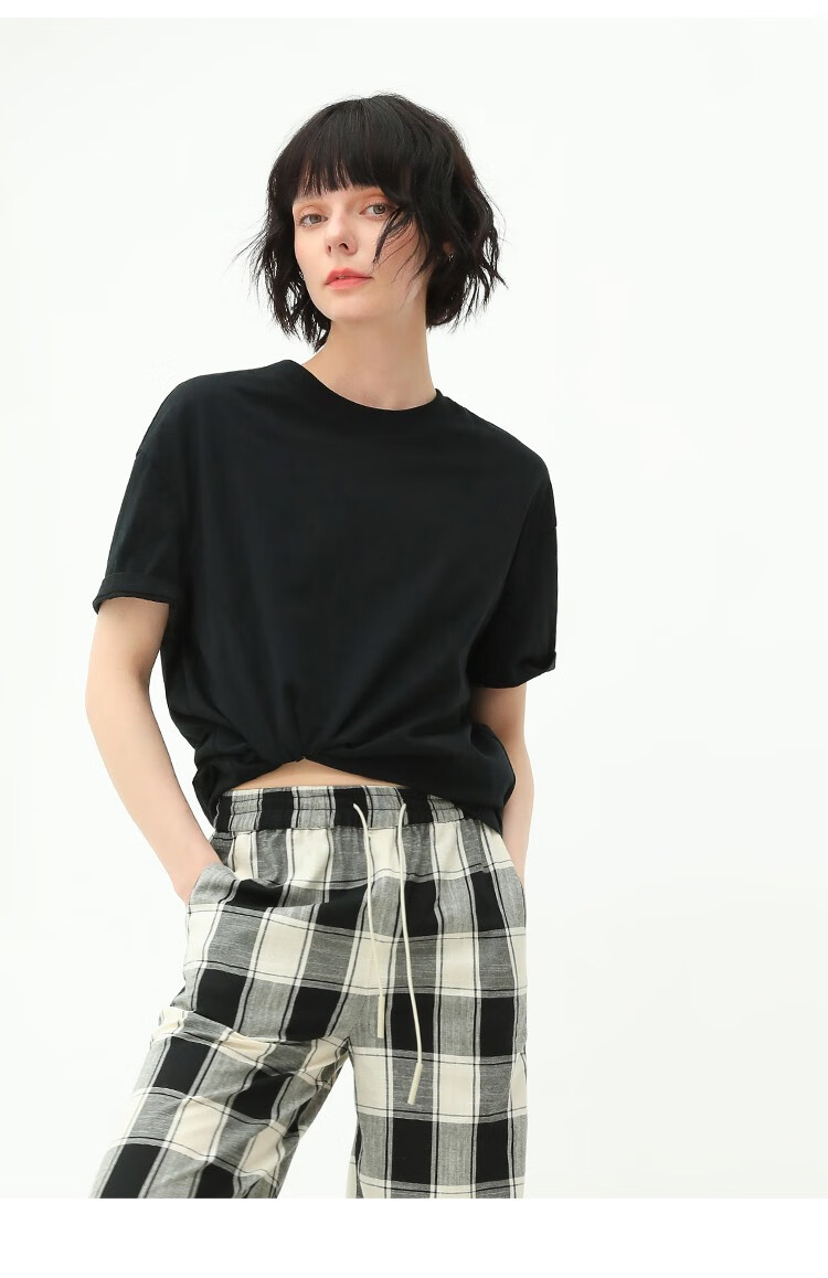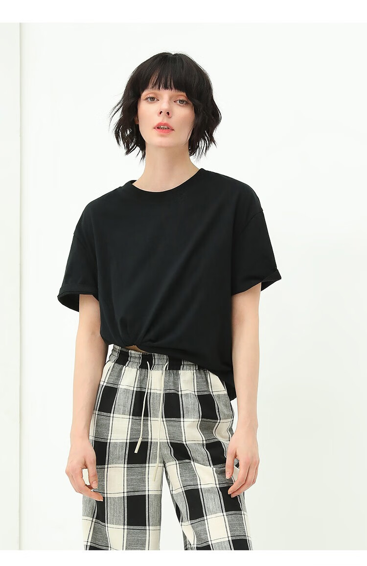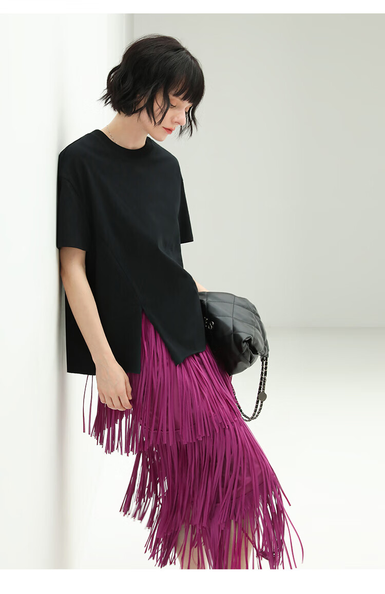 COCOBELLA设计感侧开叉甜酷短袖T恤女休闲圆领半袖NTS3