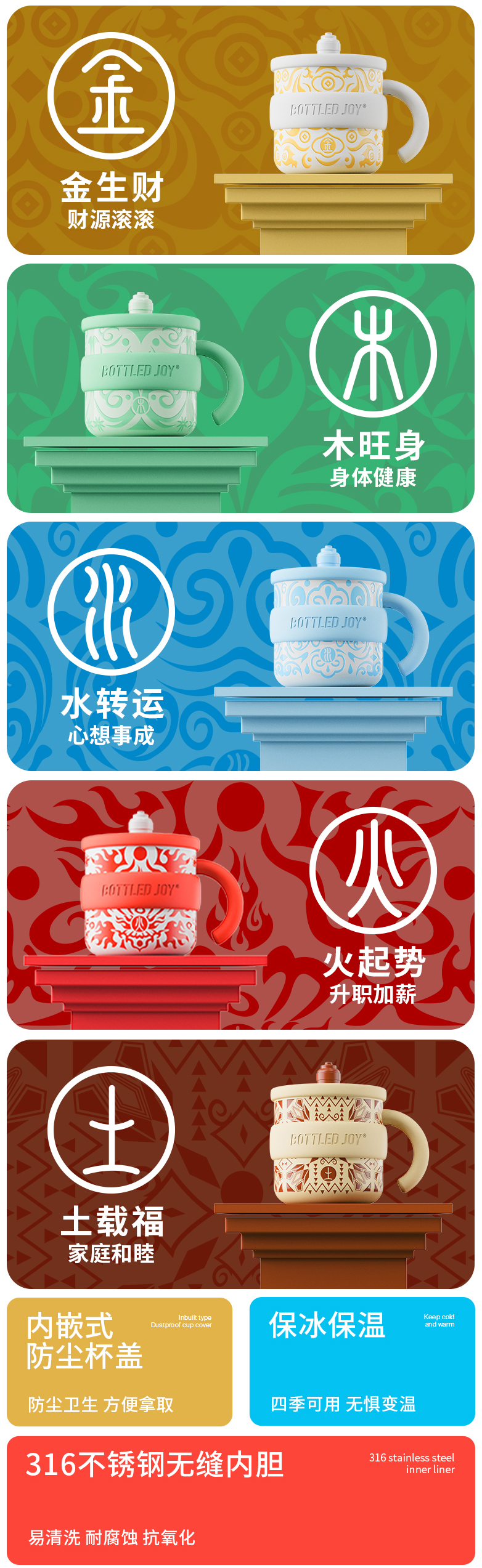 如意假日吨吨316不锈钢内胆450ml容量桌面杯子