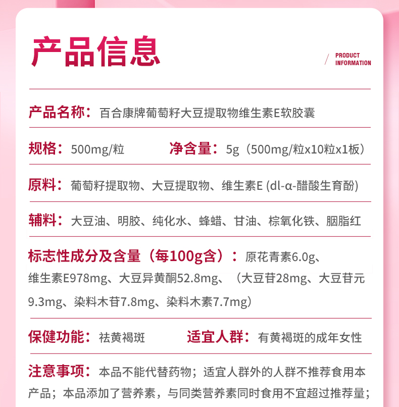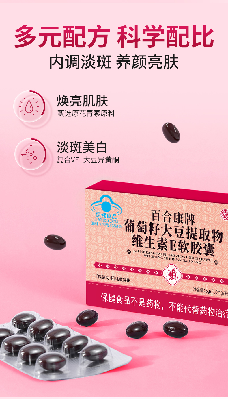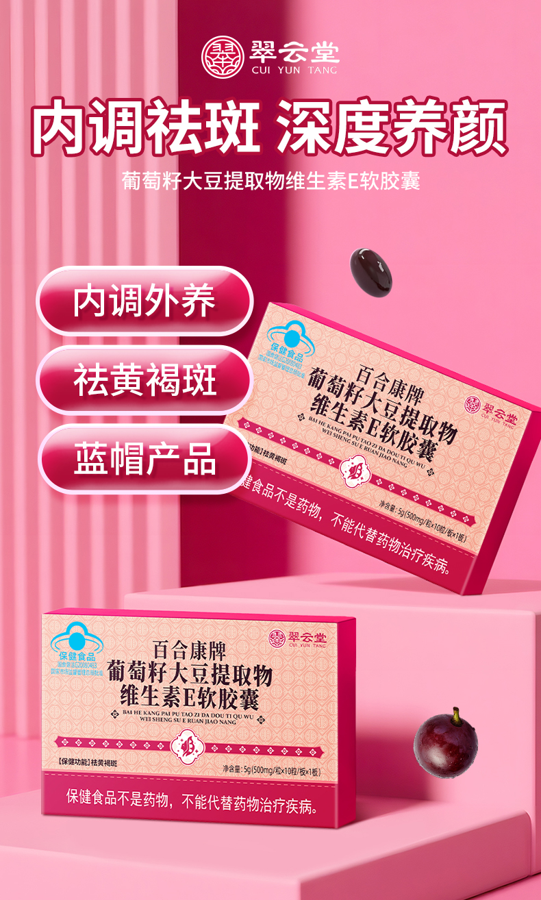 翠云堂葡萄籽大豆提取物维生素E软胶囊 10粒/板