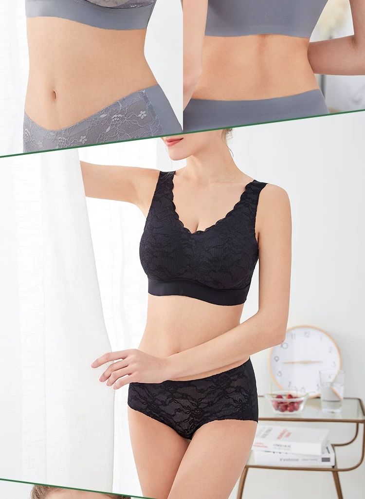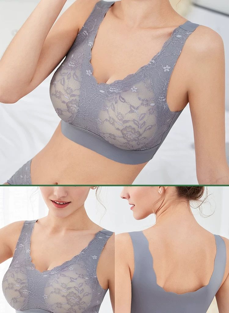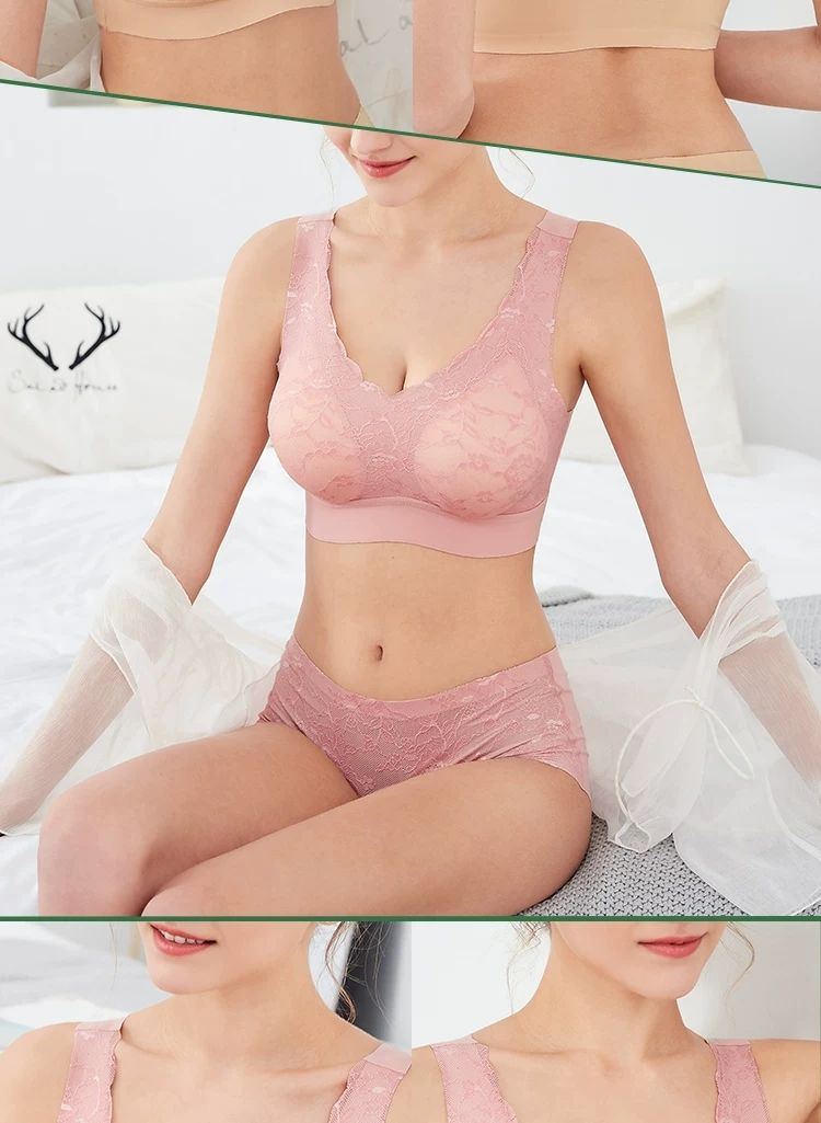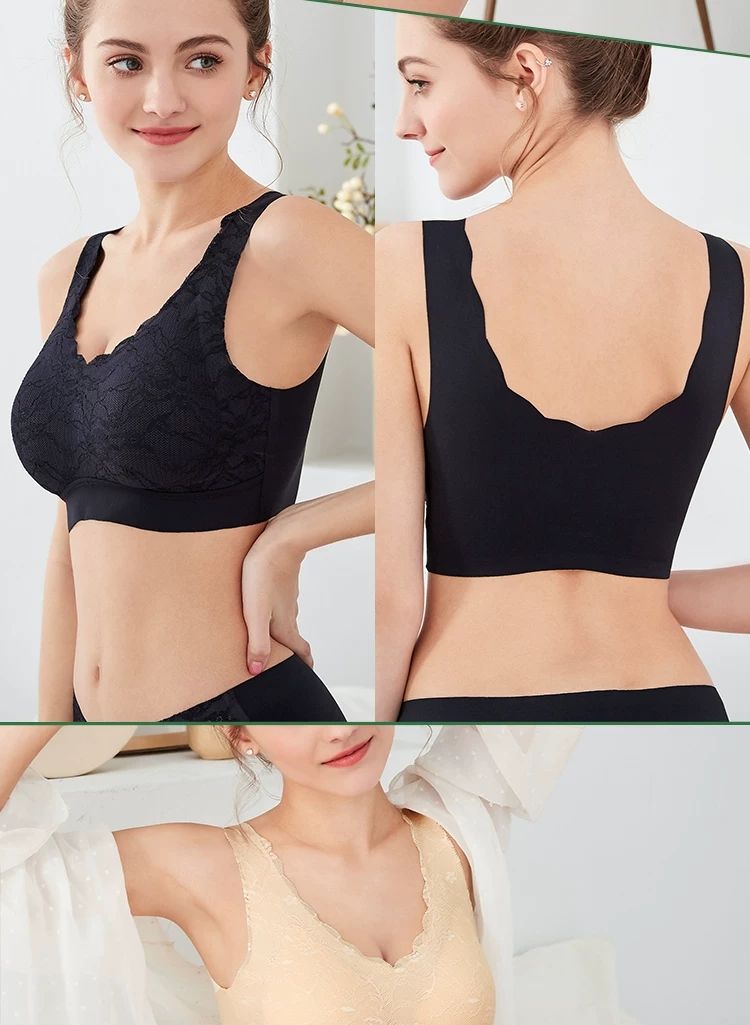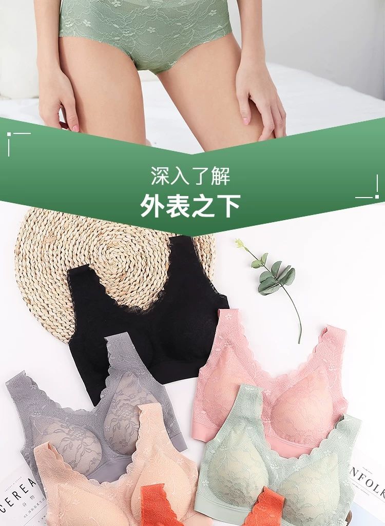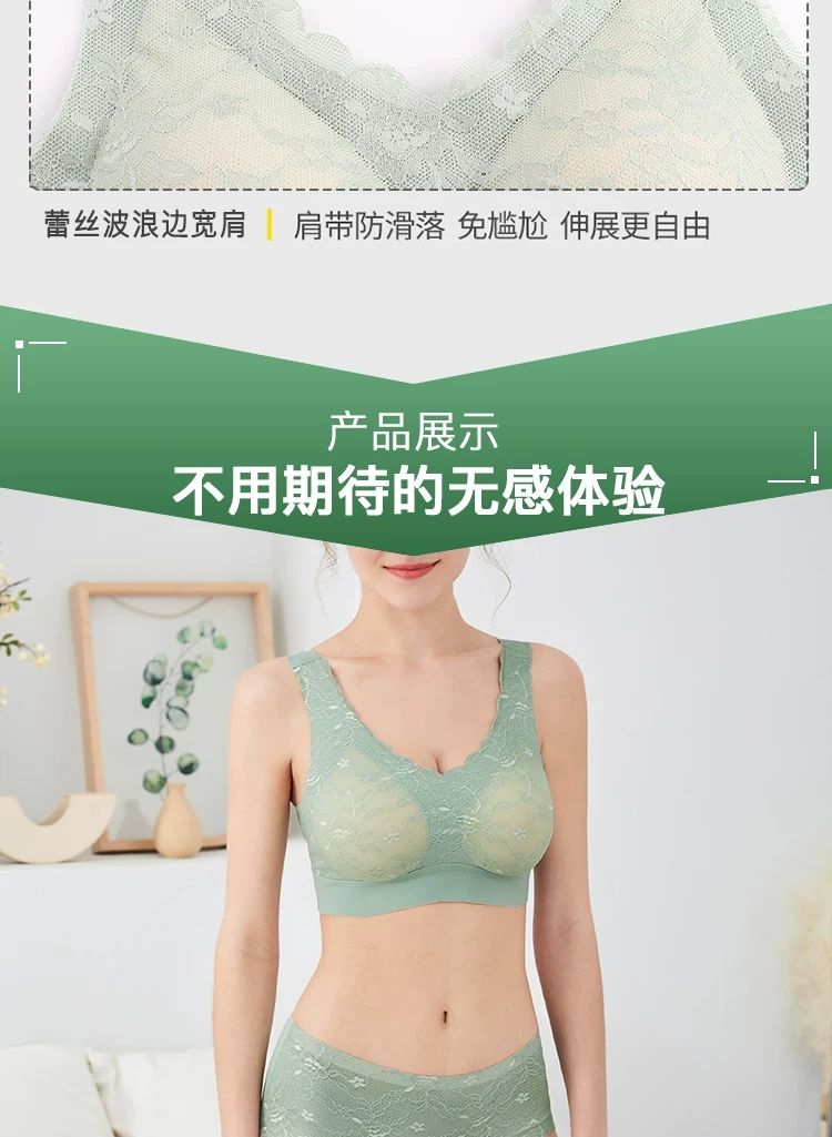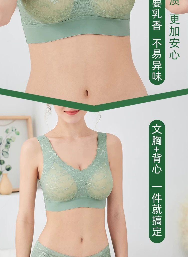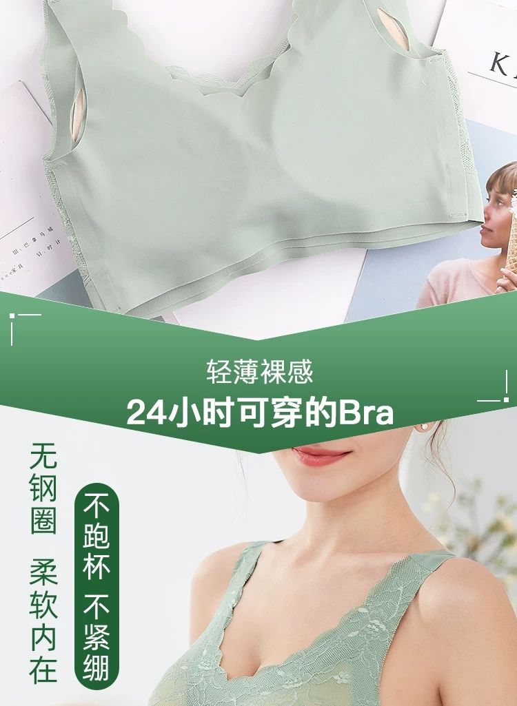 背心式瑜伽运动无钢圈聚拢内衣女蕾丝无痕美背大码乳胶睡眠文胸罩