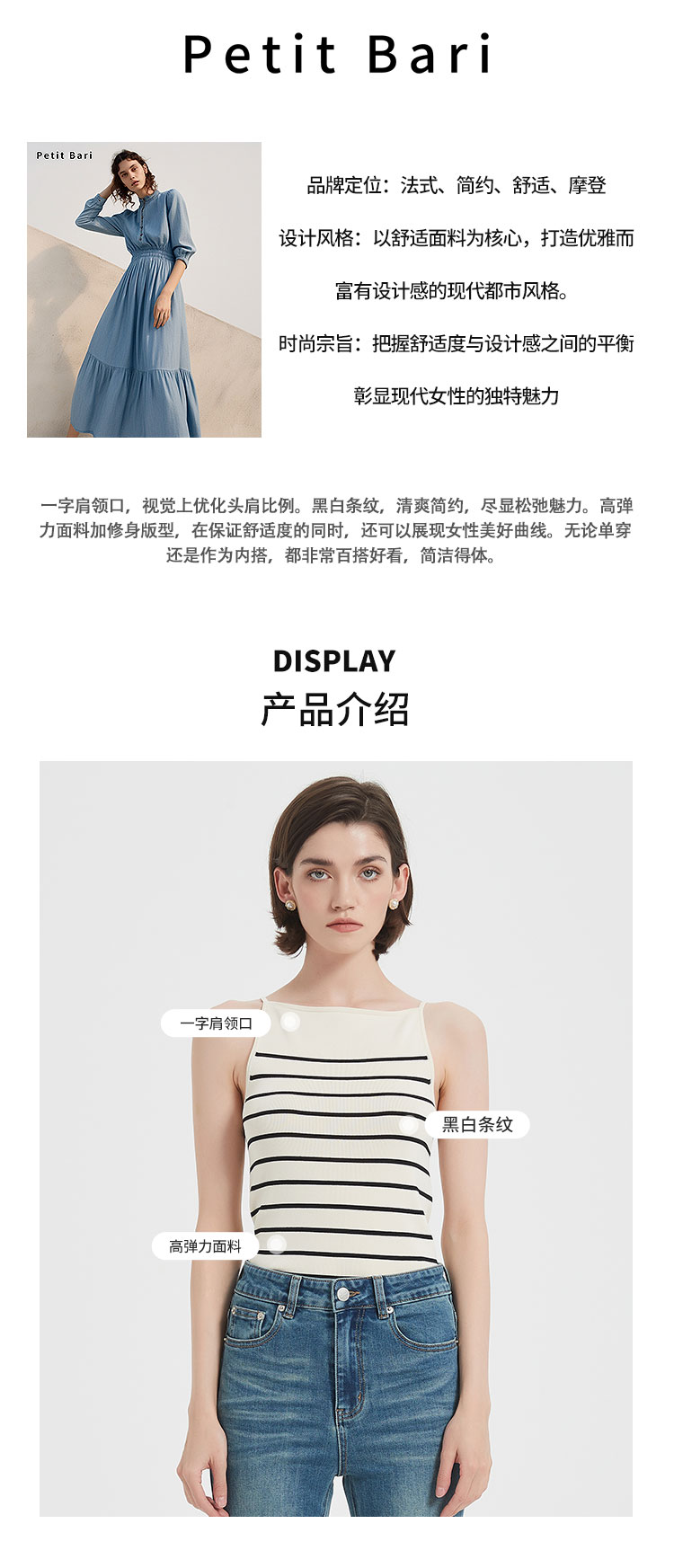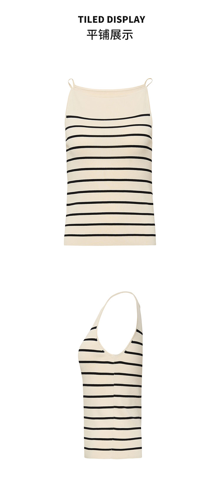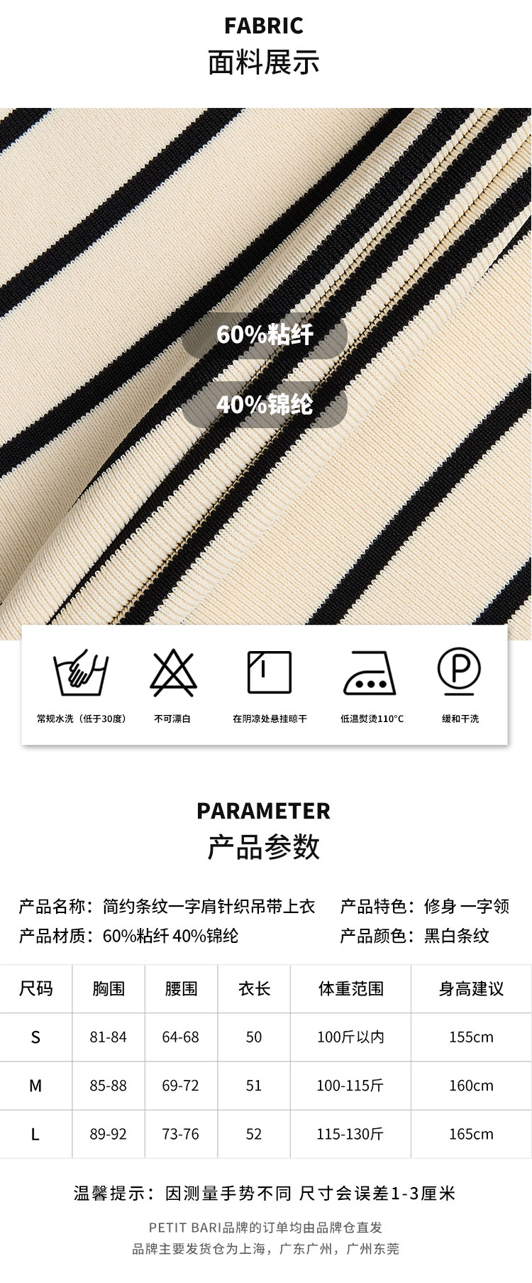 【2件9折】【Petit Bari】简约条纹一字肩针织吊带上衣