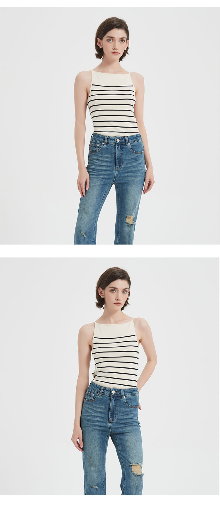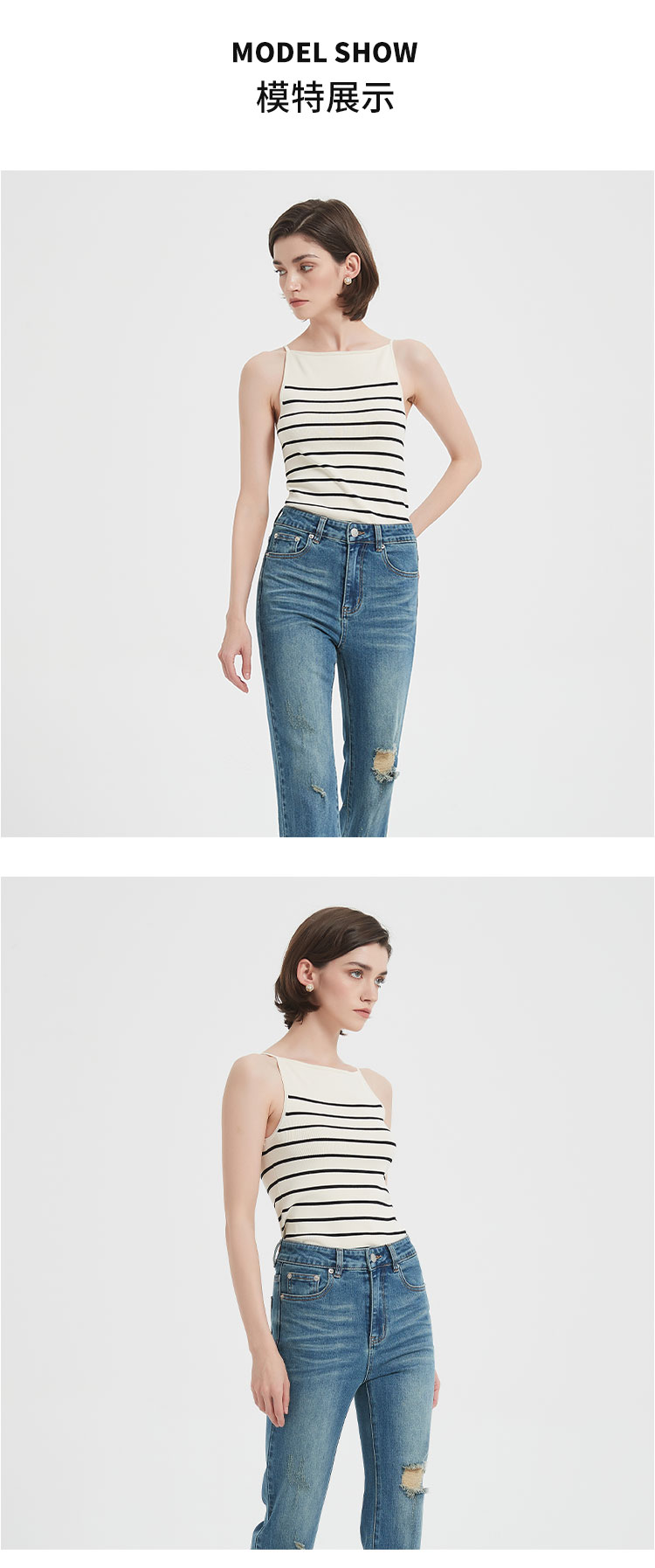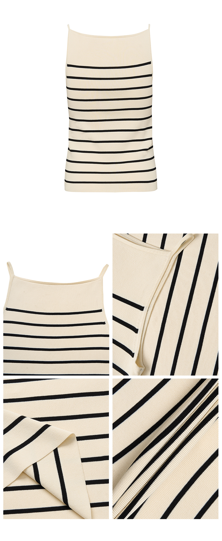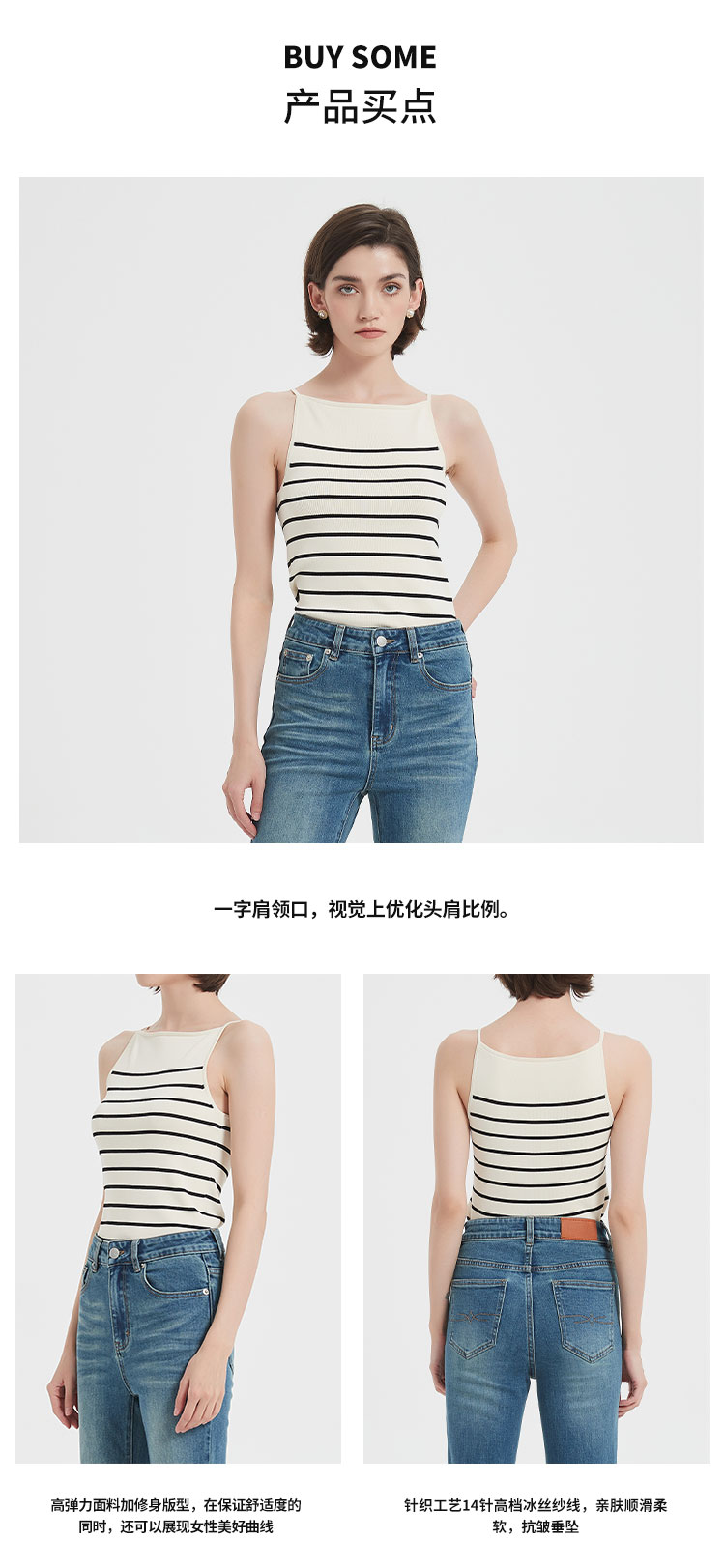 【2件9折】【Petit Bari】简约条纹一字肩针织吊带上衣
