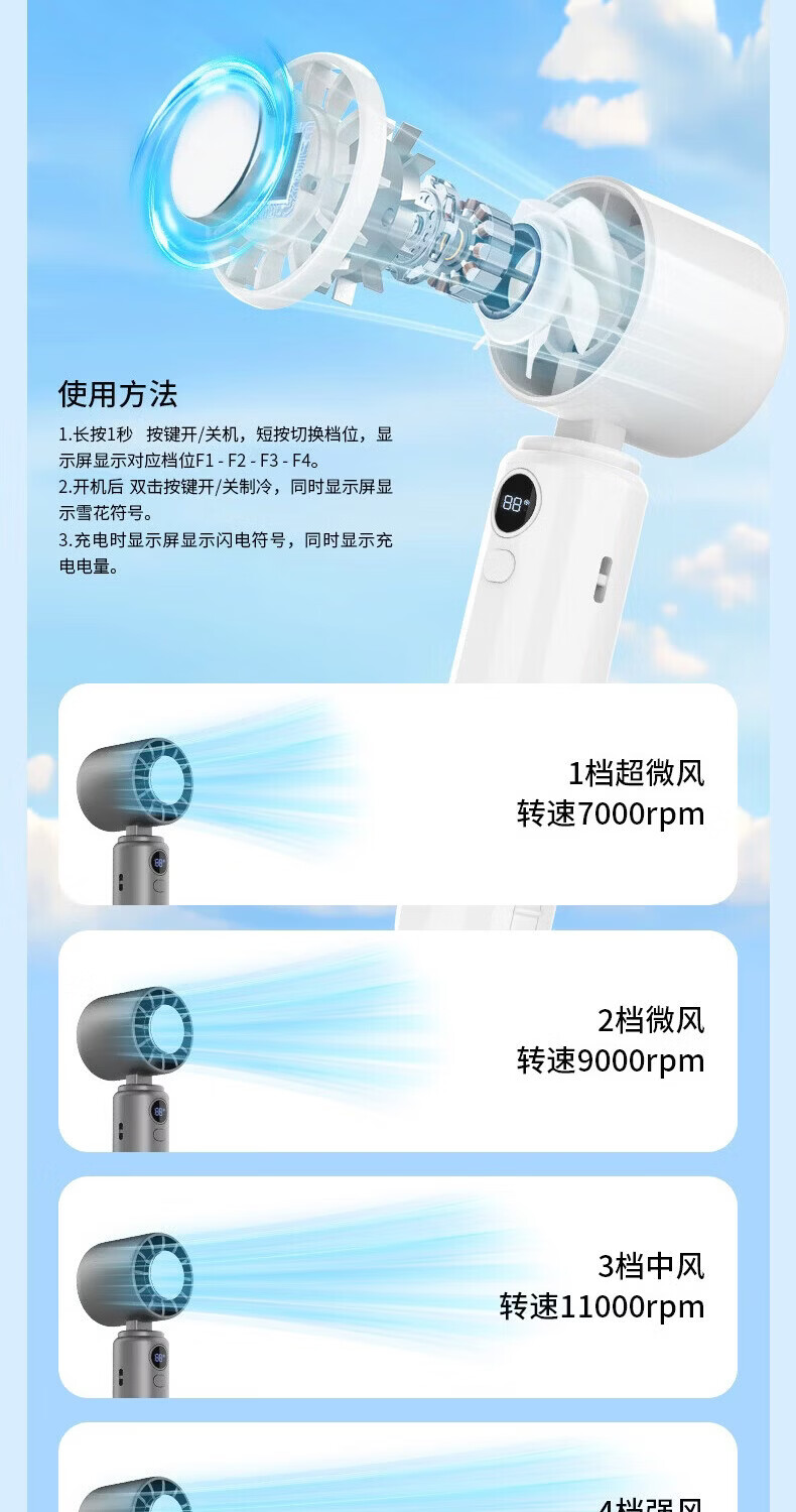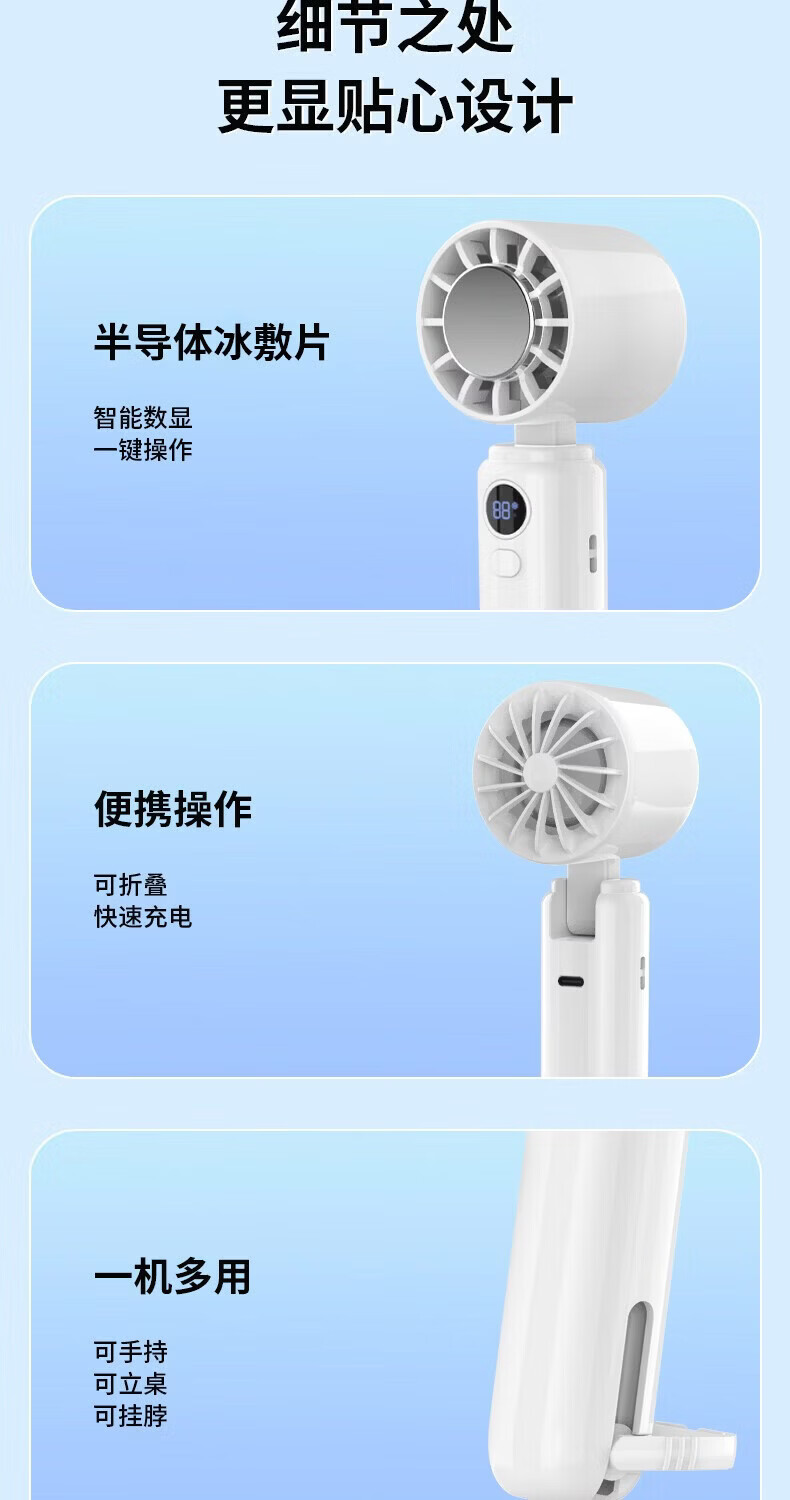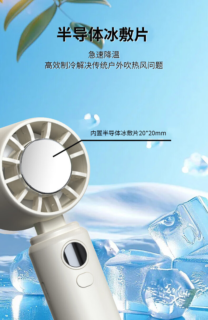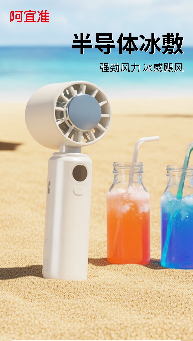 阿宜准手持制冷高速扇米白