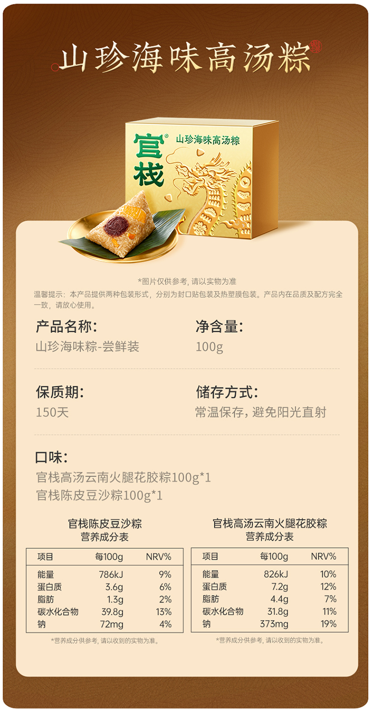 【私信门店顾问享优惠】新品上市 官栈 山珍海味高汤粽-尝鲜装-100g/只