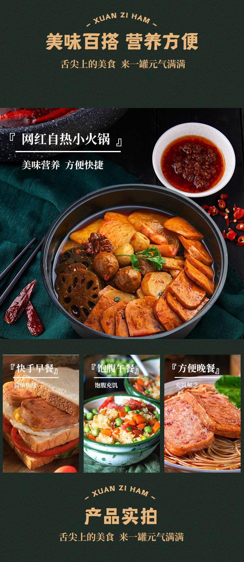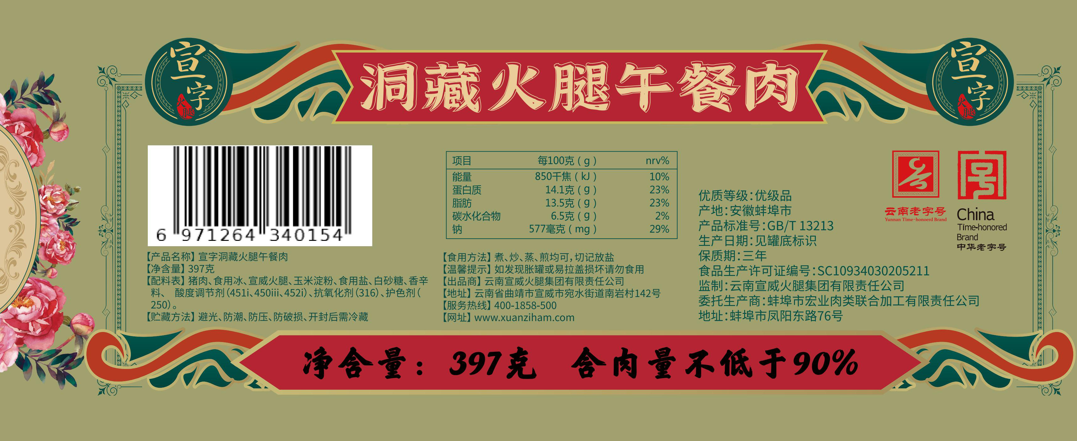 宣字洞藏火腿午餐肉罐头397g 开罐即食早餐火锅搭档 宣威火腿美食