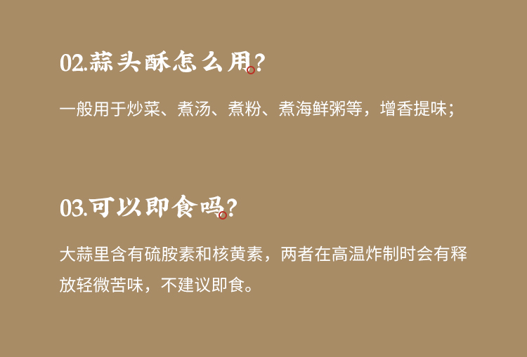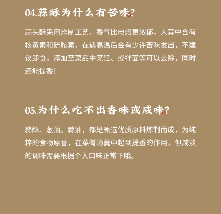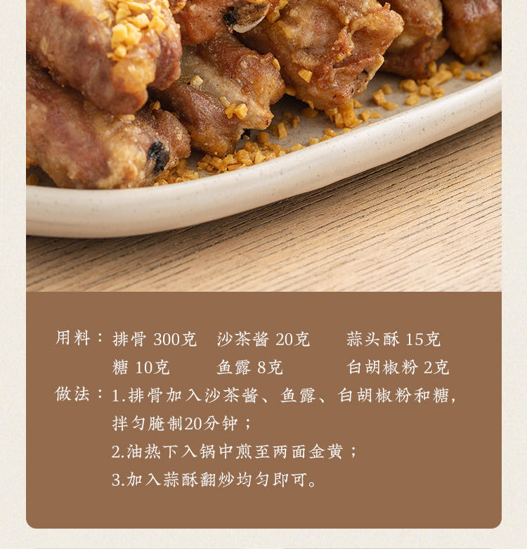 【美味必备|潮汕集锦炸蒜头酥】选用山东鲜蒜,搭配优质大豆油,颗粒精细蒜香纯粹,每一粒都炸透,黄金20秒精准控温,蒜粒更酥脆,配料干净不裹淀粉,蒜香更浓百搭调味