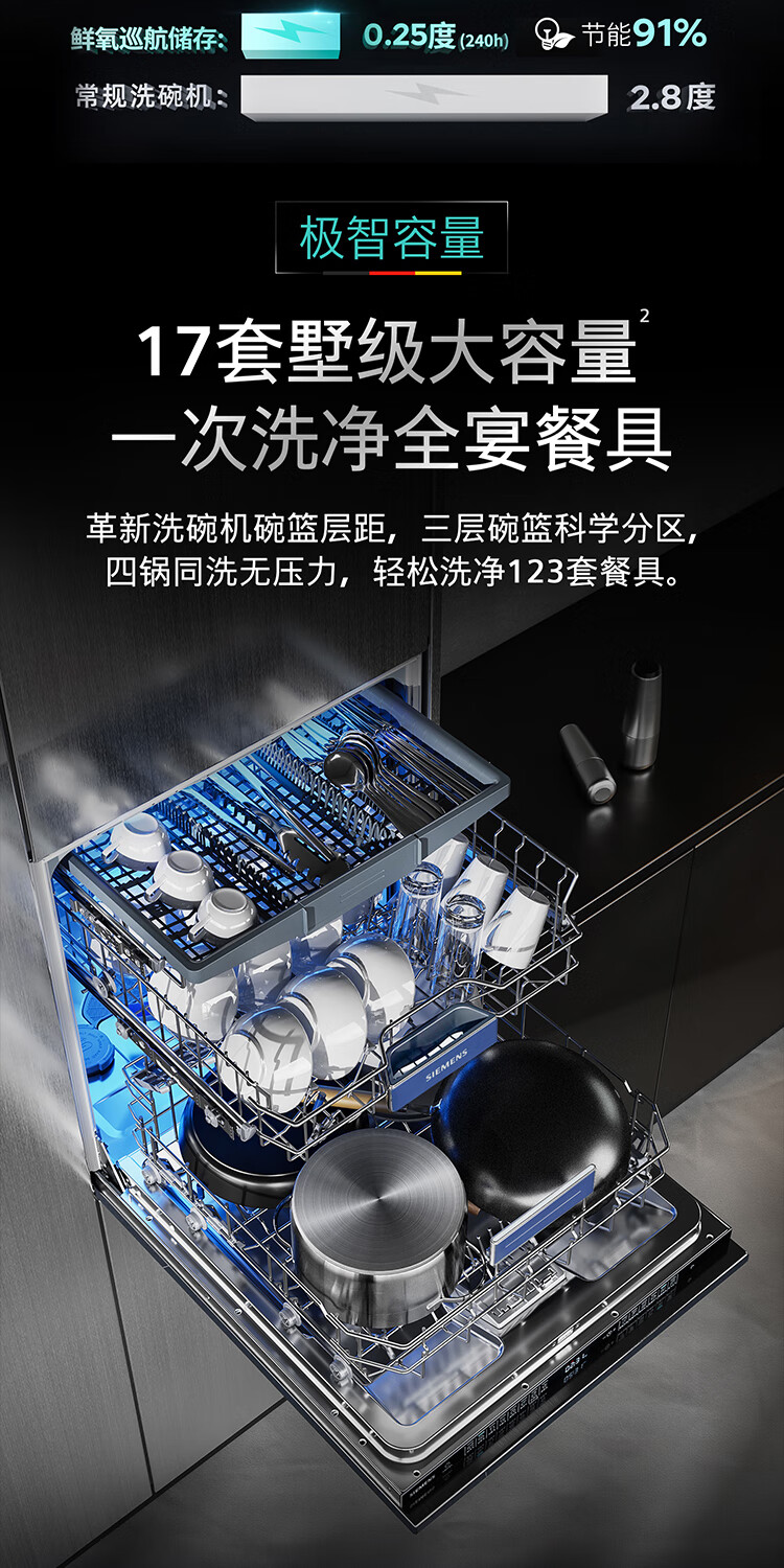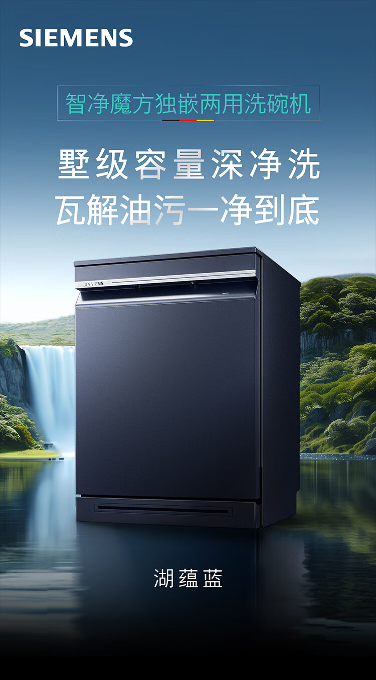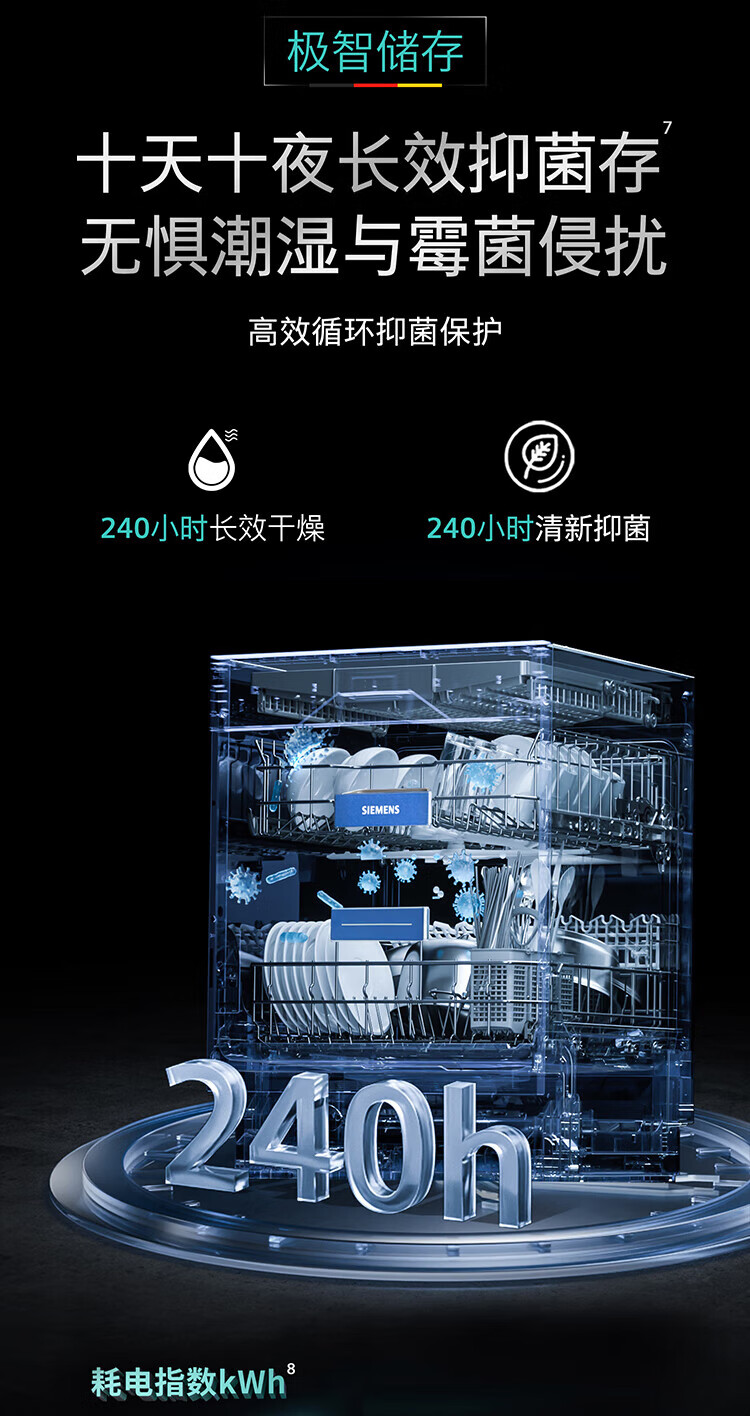 西门子(SIEMENS)【智净魔方】独嵌两用洗碗机 17套超大容量 智能抽湿烘干 240h长效抑菌存 SN23HL25MC