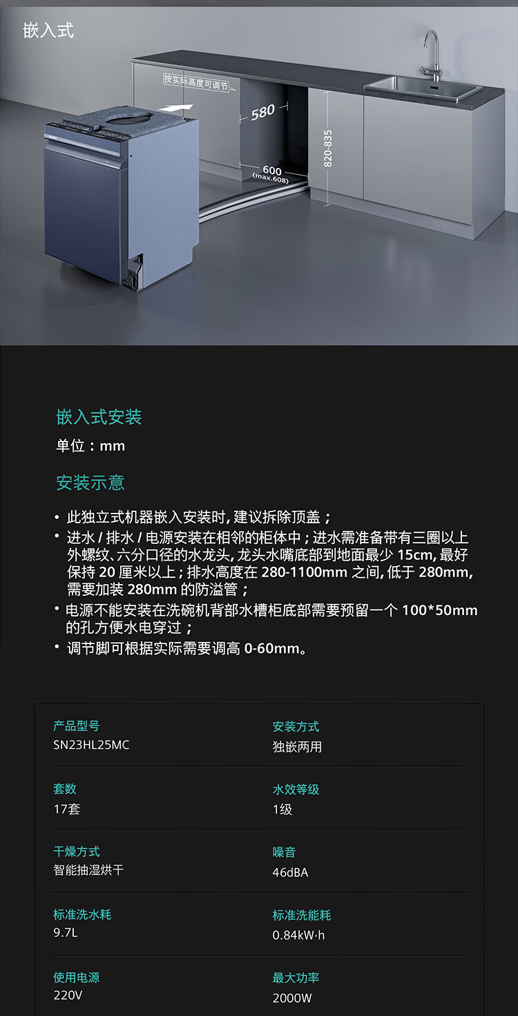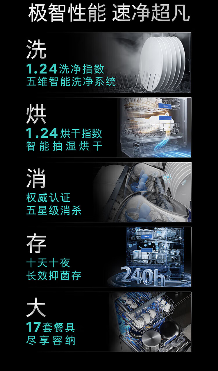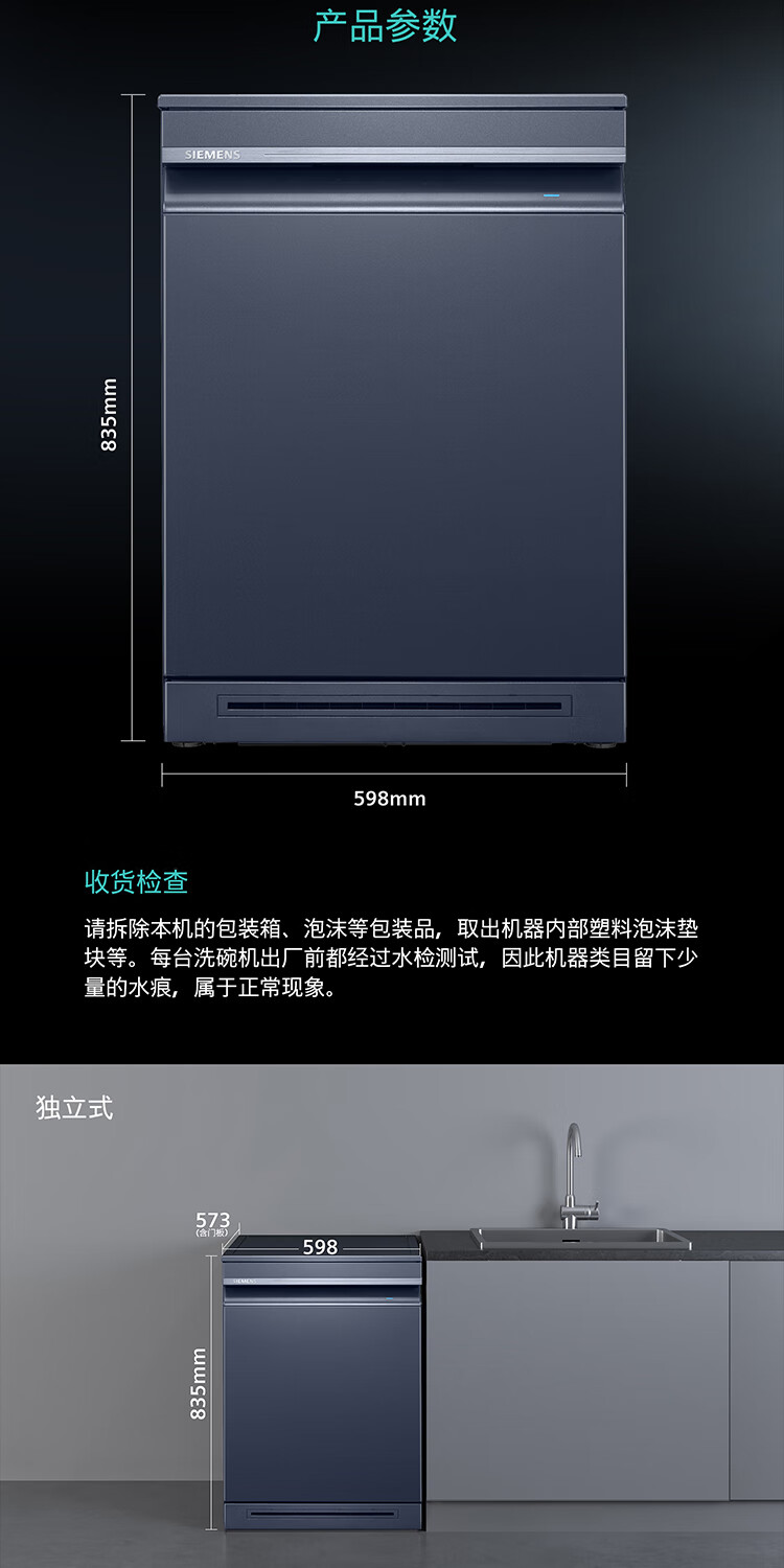 西门子(SIEMENS)【智净魔方】独嵌两用洗碗机 17套超大容量 智能抽湿烘干 240h长效抑菌存 SN23HL25MC