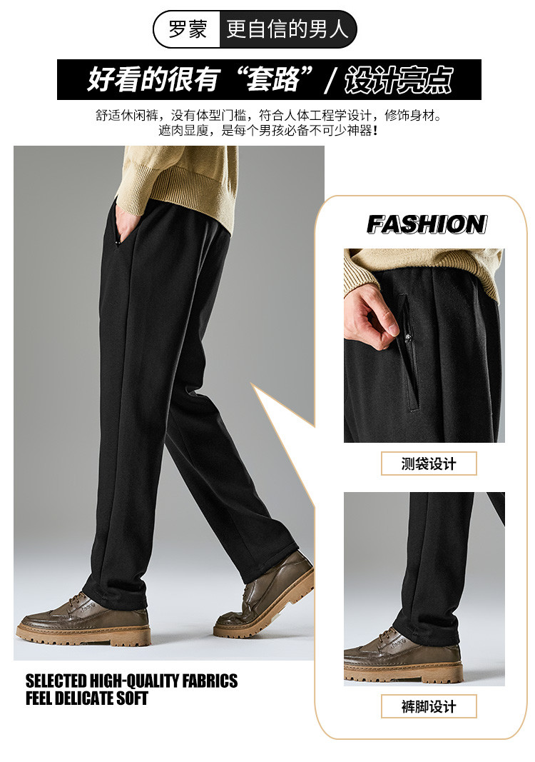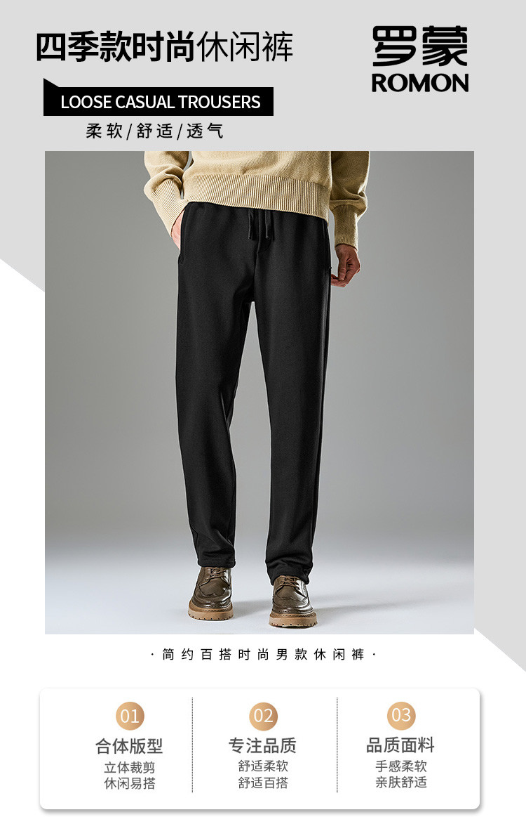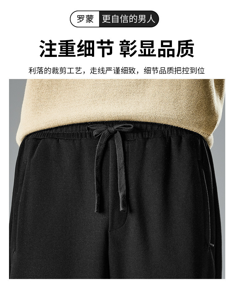 罗蒙简约男士纯色休闲裤保暖百搭舒适休闲男亲肤透气潮流裤子男