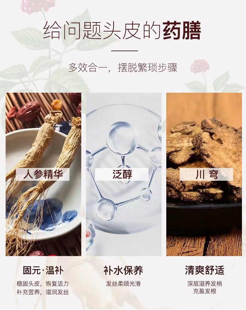 康绮墨丽15年间坚持不懈地对韩方进行研究、开发,以韩国古代医书《东医宝鉴》为基础,将传统医学和现代医学wan美结合,精选40余种韩方草药科学搭配,利用自社传统秘法,长时间熬煮浓缩提取出精华,制成天然、温和的优秀韩方洗护产品。给问题头皮的韩方藥膳,在韩国本土市场更受欢迎,很多明星私下都在用!比大家熟知的吕效果好多了!