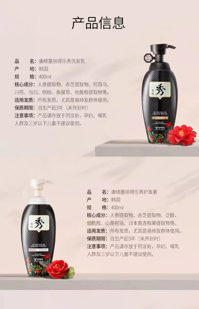 【品名】韩国康绮墨丽防脱滋养洗发水500ml+护发素400ml