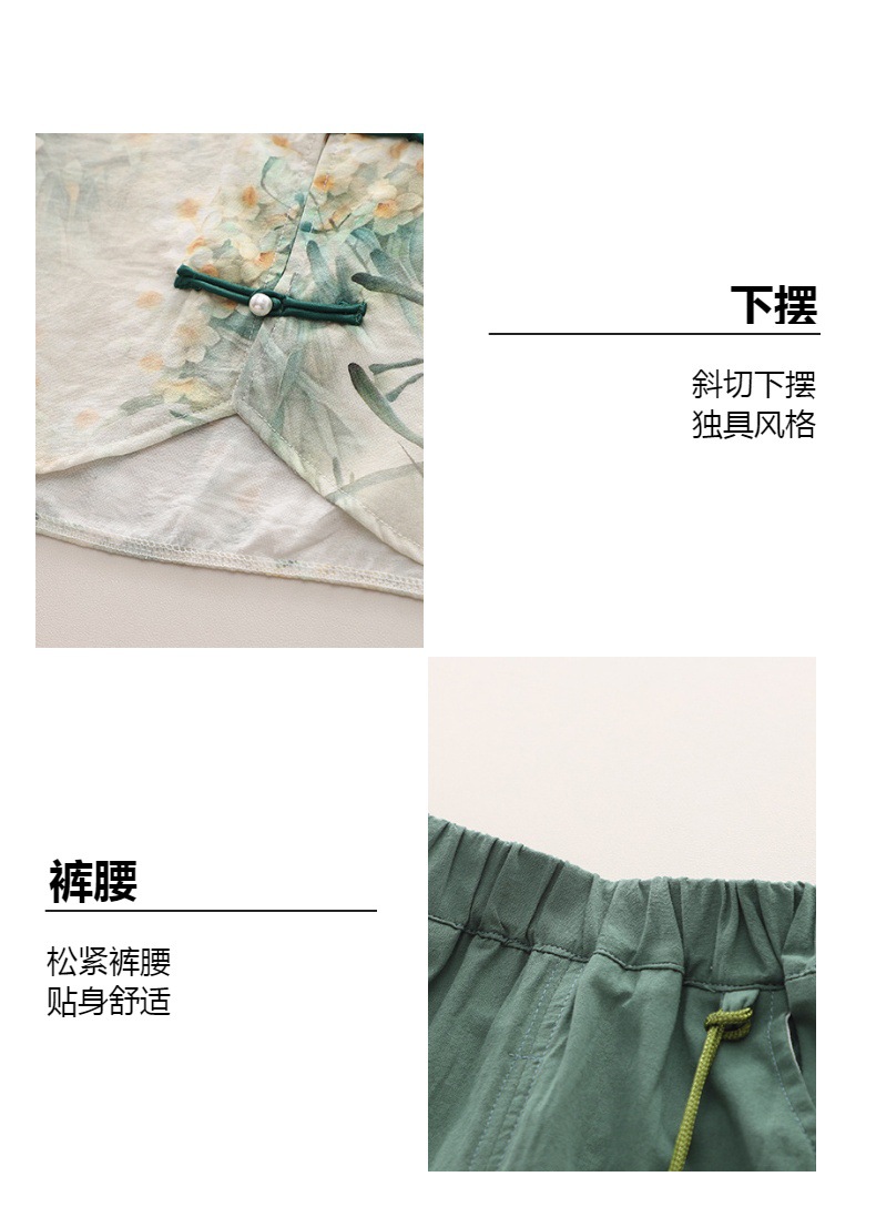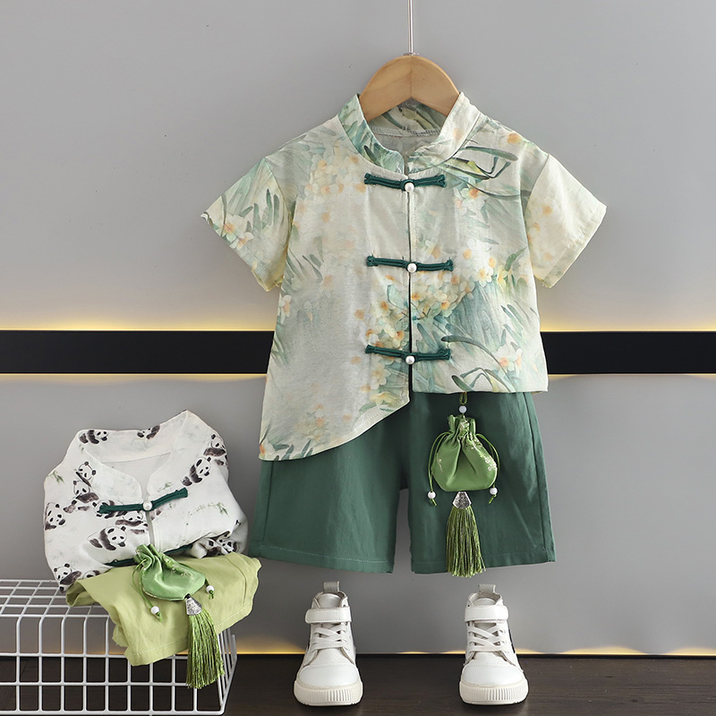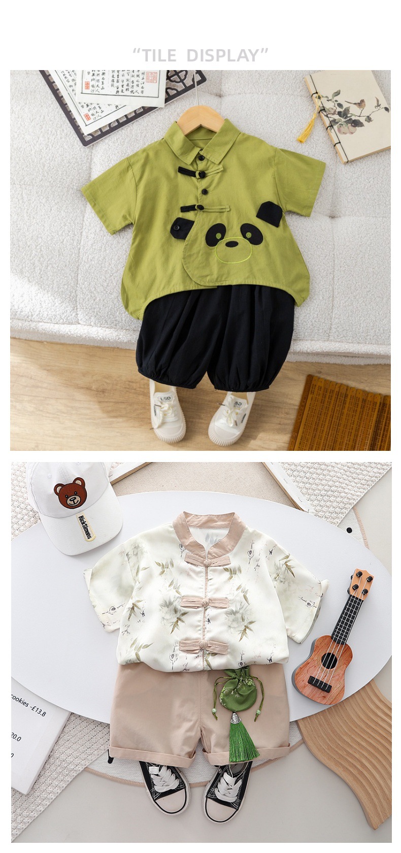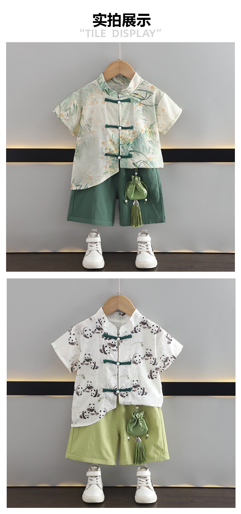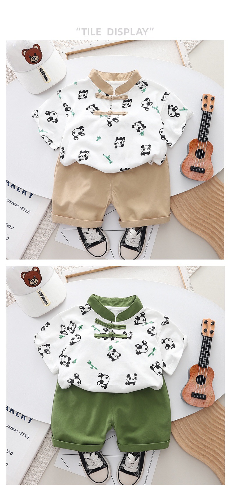 【中国风短袖】和悦2024夏季卡通熊猫盘扣套装 斜襟荷包国风童装