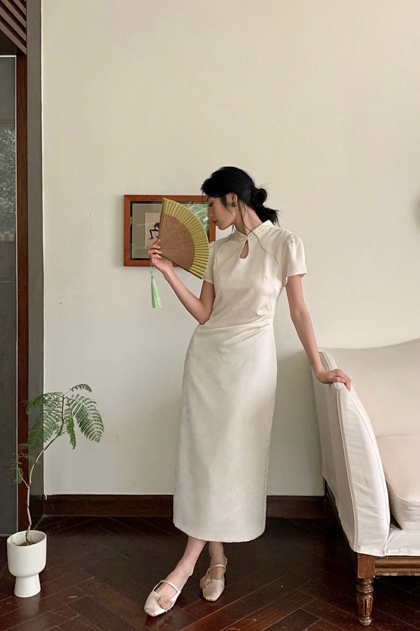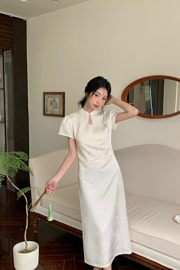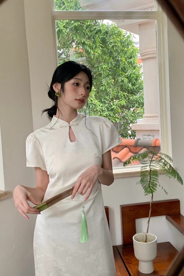 ELLA JADE 新中式提花镂空立领改良旗袍 20243