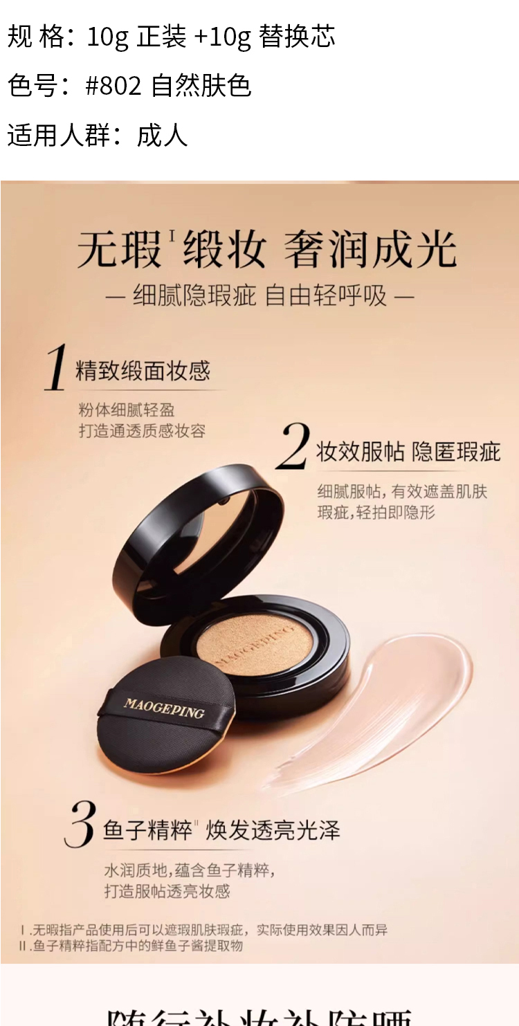 毛戈平BEAUTY奢华鱼子无瑕气垫粉底液(10g正装+10g替换芯)