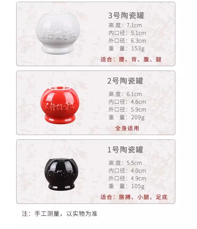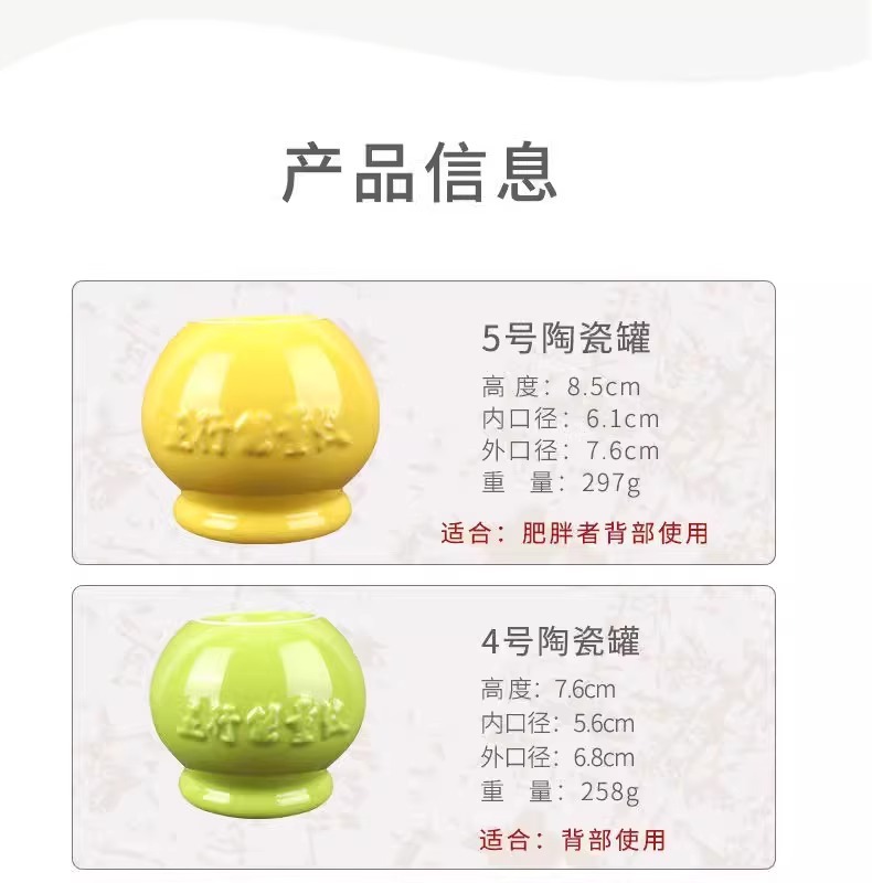 五行能量罐拔罐器家用陶瓷凹底吸湿扒火罐美容院专用玻璃火罐大号