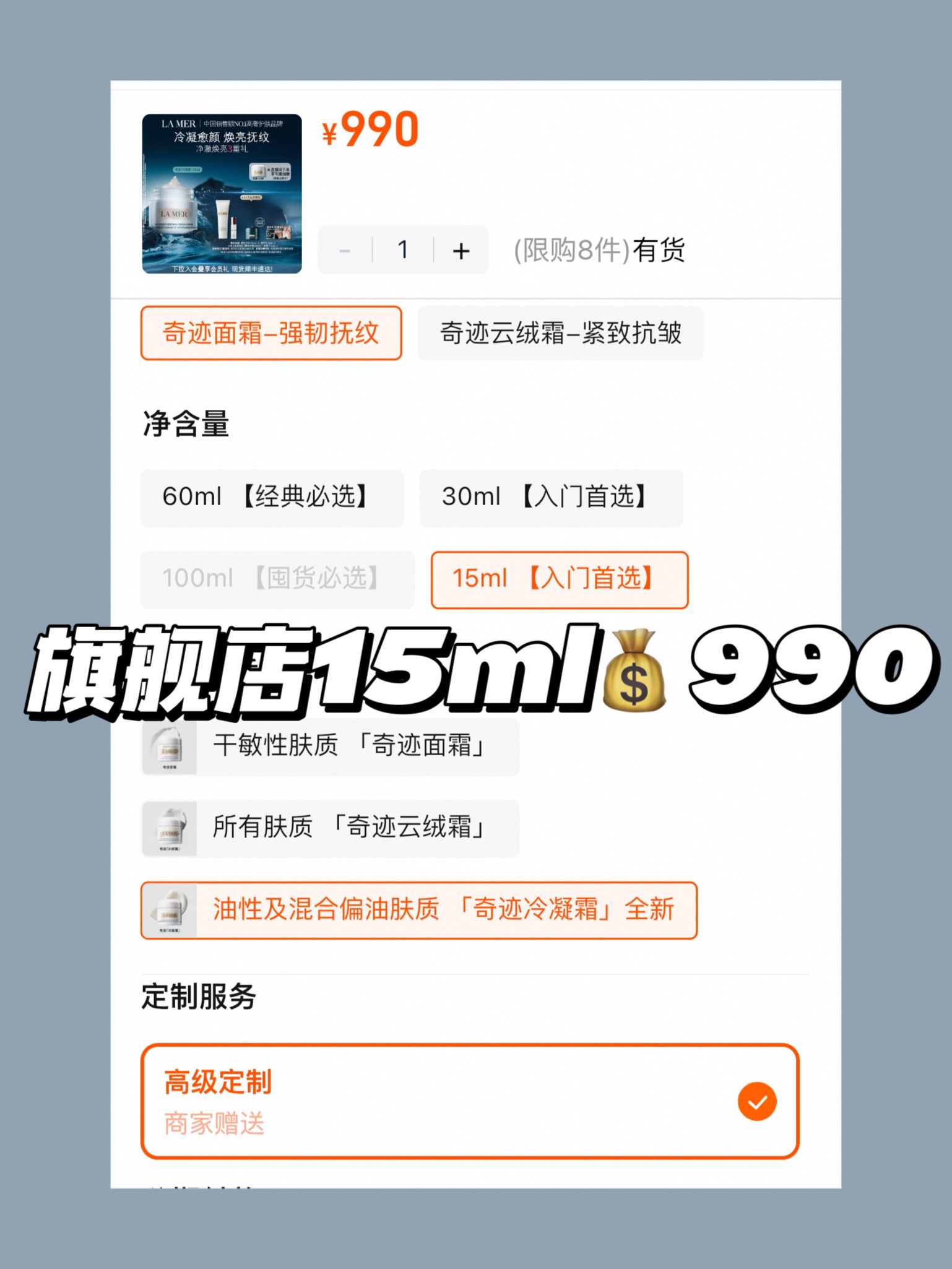 旗舰店15ml💰990!咱们60ml秒杀它!