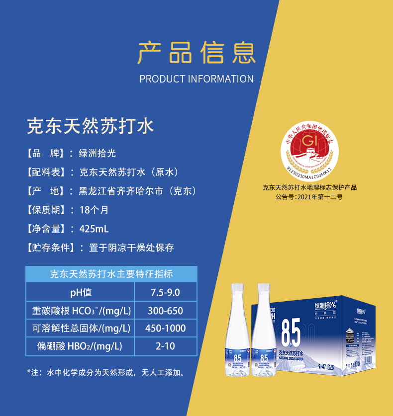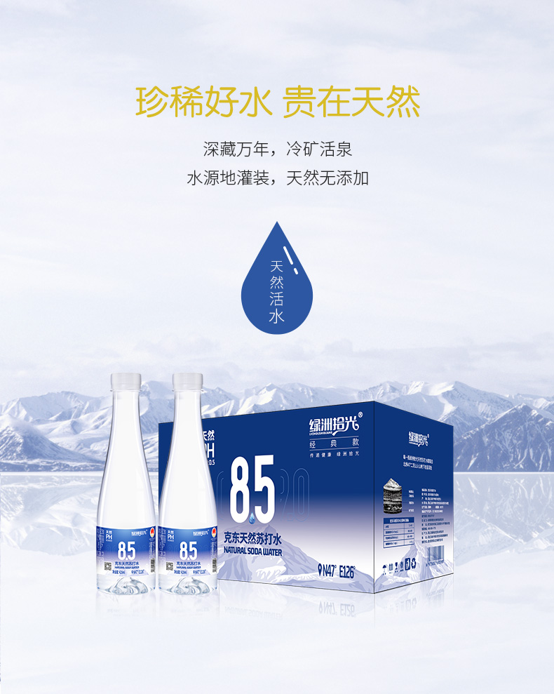 顺丰包邮【自营】绿洲时光克东天然苏打水 425ML*24瓶/箱 NM