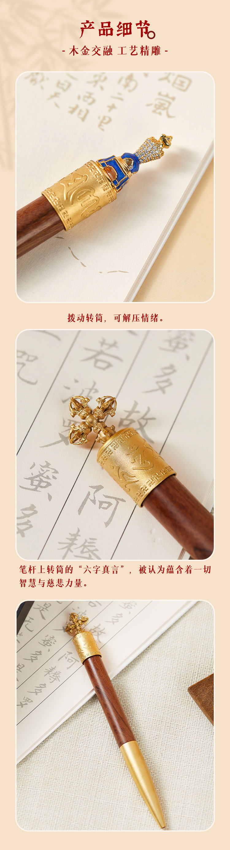 牛首山文创六字真言祈愿笔锌合金笔头可拆卸吊坠中性笔文具礼盒
