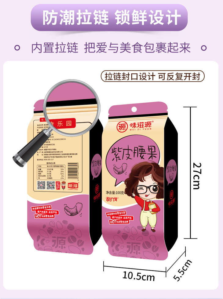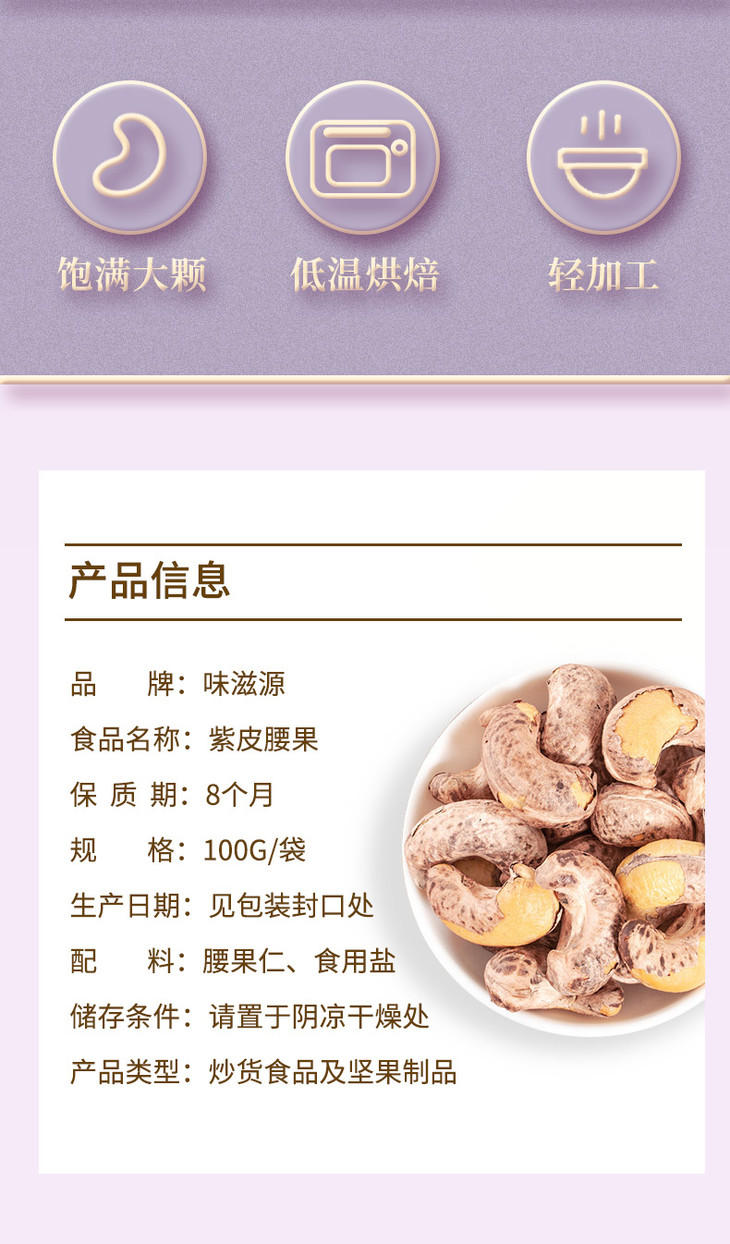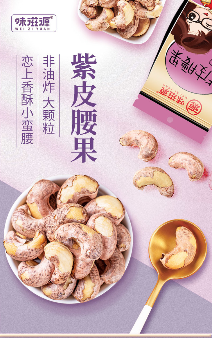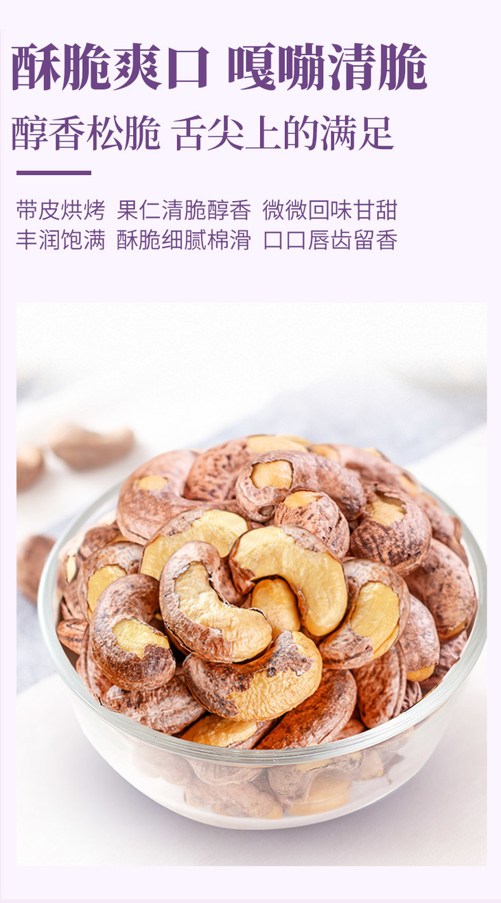 味滋源紫皮腰果仁100g带皮腰果原味烘培越南特产坚果零食炒货称斤
