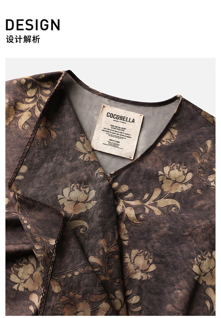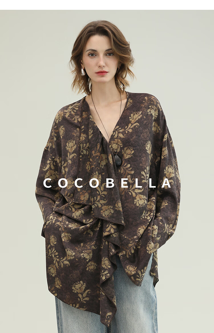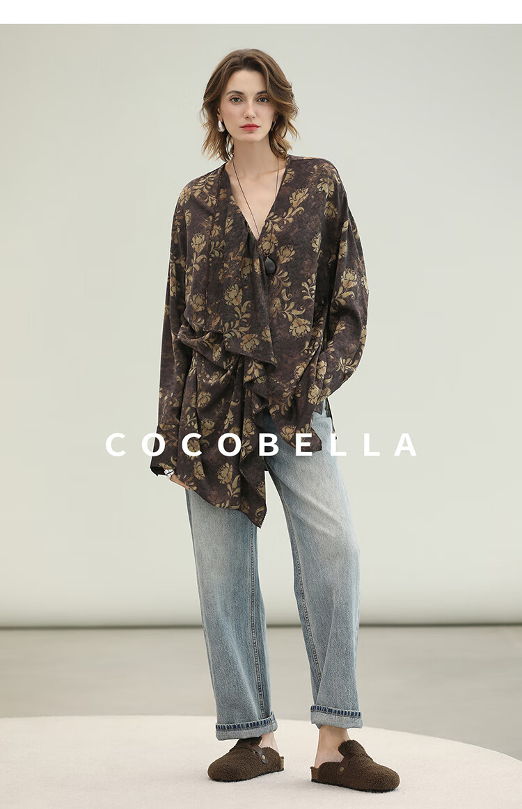 COCOBELLA早秋侘寂风荡领衬衫女不对称荷叶边长款衬衣SR3217