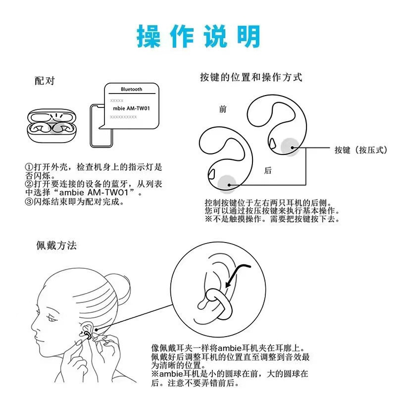 a.先把手机连接的蓝牙(名称是ambie AM-TW01)删除,关闭手机蓝牙