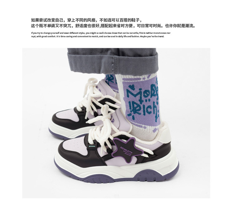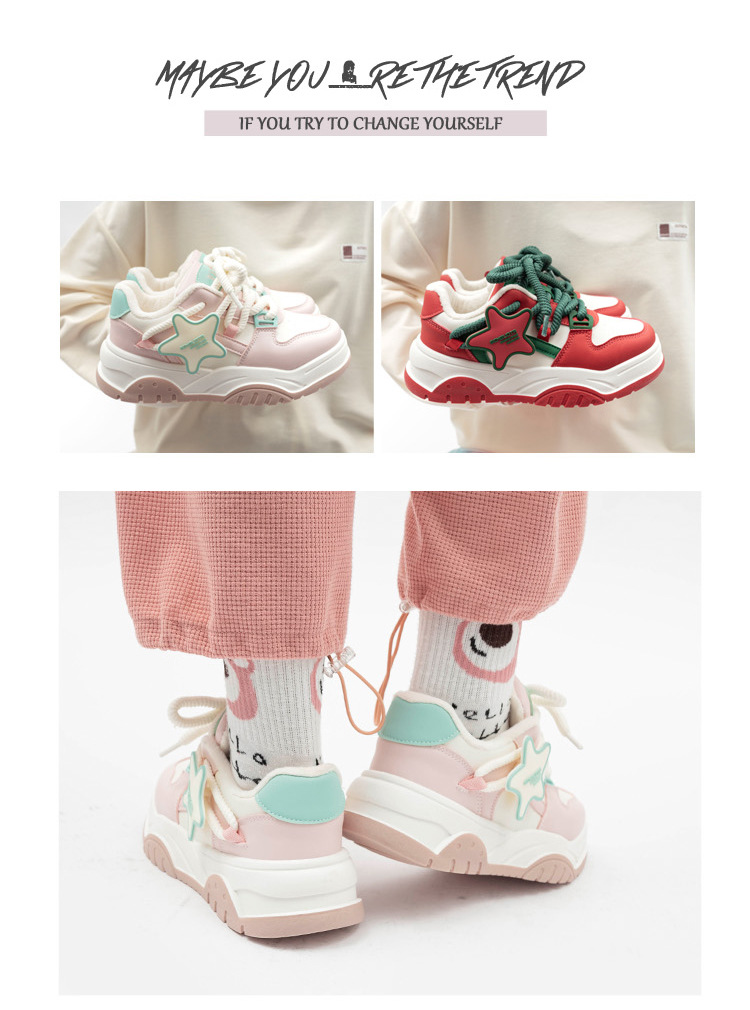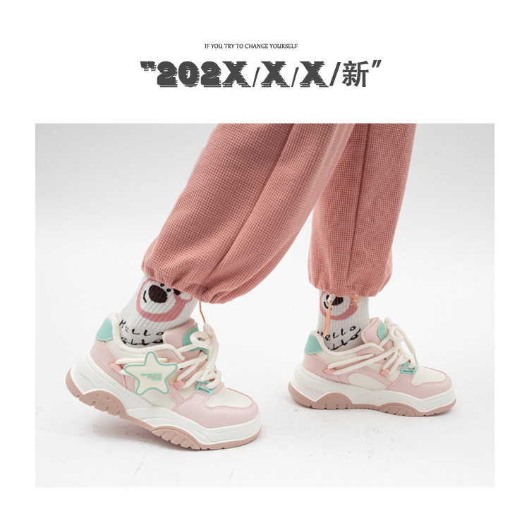 「三款配色!加绒款」甜酷星星拼色加绒板鞋女2023秋冬新款鞋ins潮厚底女鞋小众鞋子女