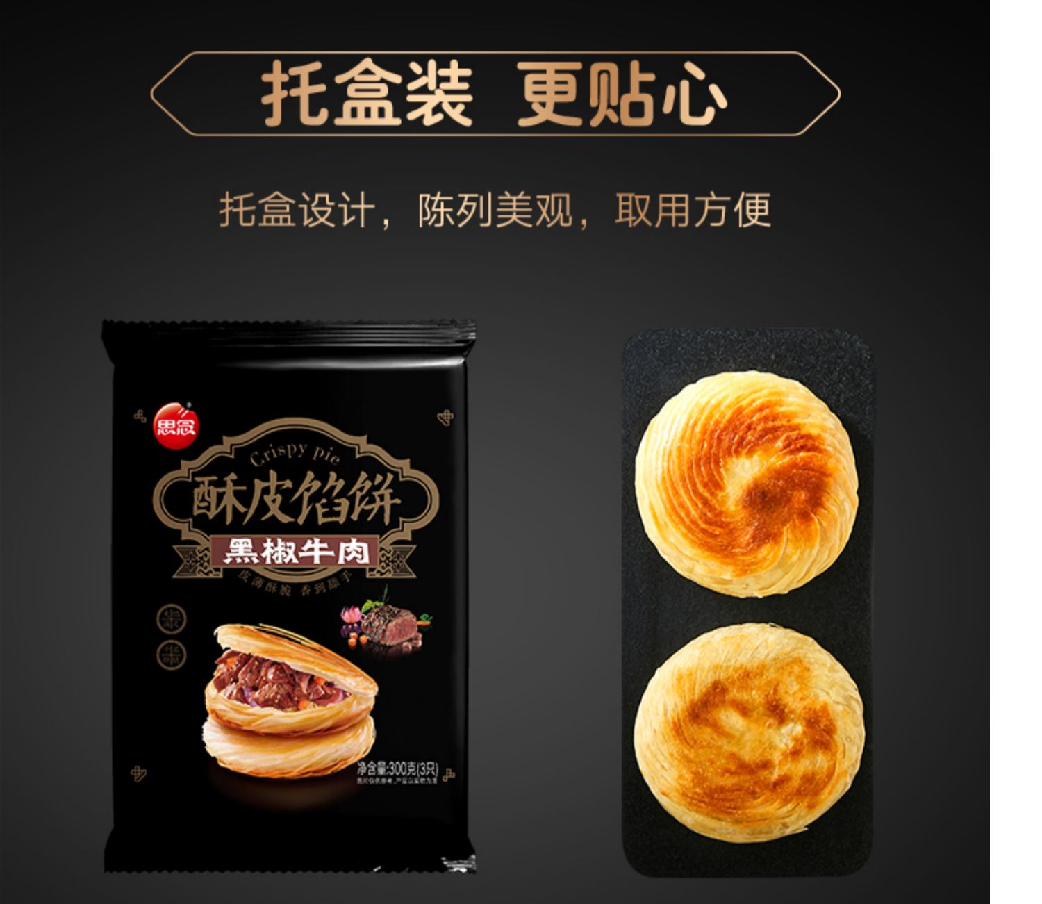 300g思念黑椒牛肉酥皮馅饼 方便速食早餐
