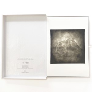 这20张照片出自卢彦鹏摄影作品《山·雾》系列。都是胶片拍摄,手工暗房制作,某种程度像是在暗房里绘画,用手直接触摸画面,由时间和药水的波动控制画面。该画片集挑战了印制工艺难度,使画面结果几近原作。每个书盒全手工制作,手工打印编号,附作者签名,限量800份。单幅照片在被观看时,既像被妥贴装帧在盒中,又便于取出装裱挂墙,予人在安静凝视感受东方禅意。