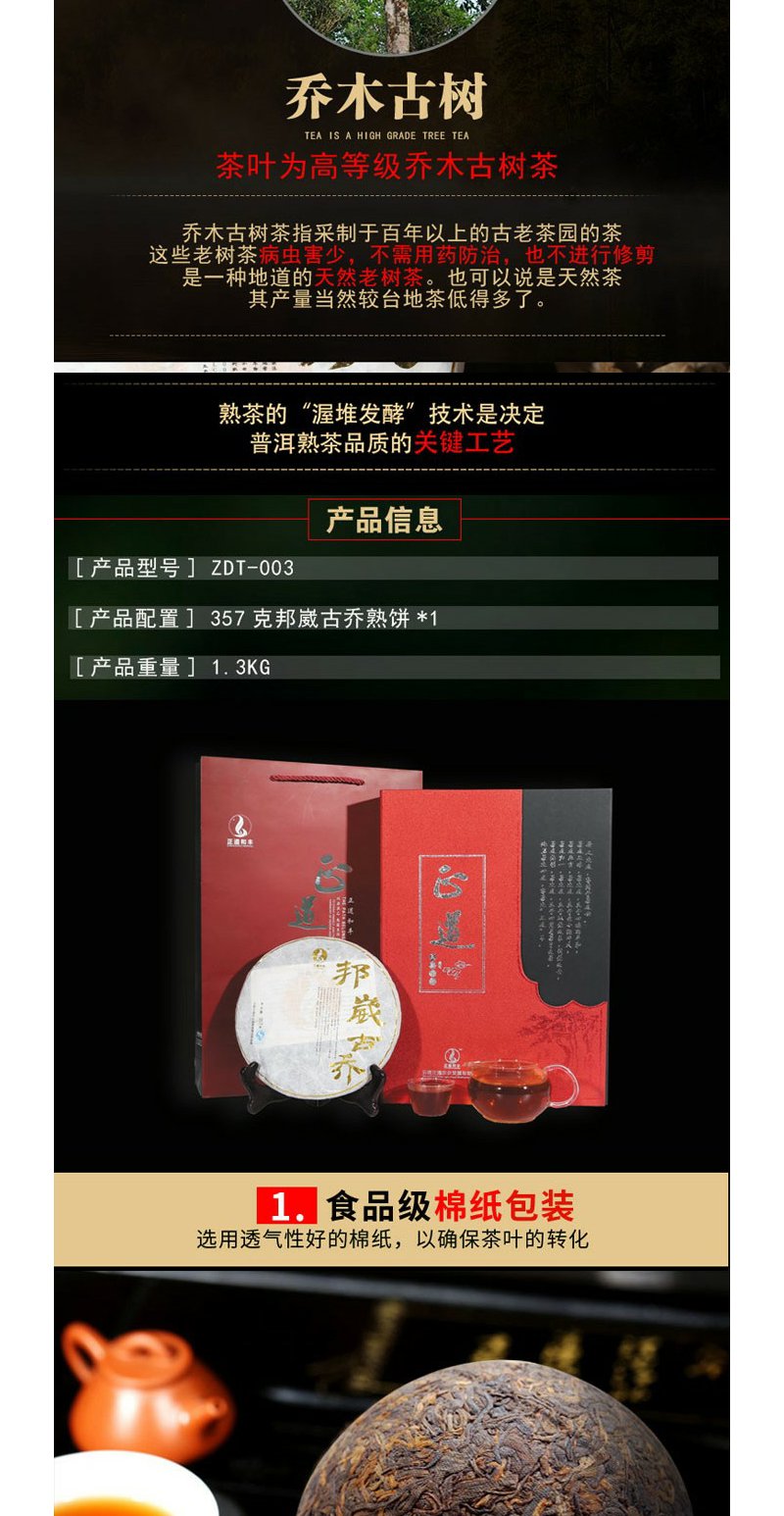 正道和丰 茶叶ZDT-003 克邦崴古乔熟饼x1
