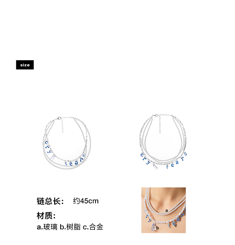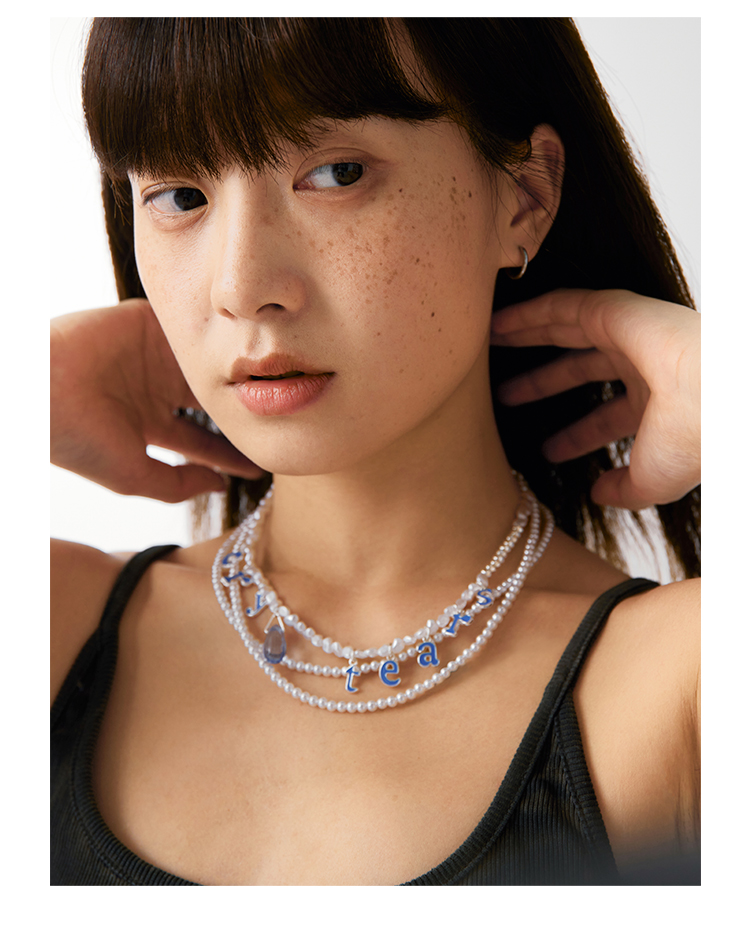 CryingCenter cry tear 彩豆珠、珍珠字母挂坠眼泪项链 哭喊中心