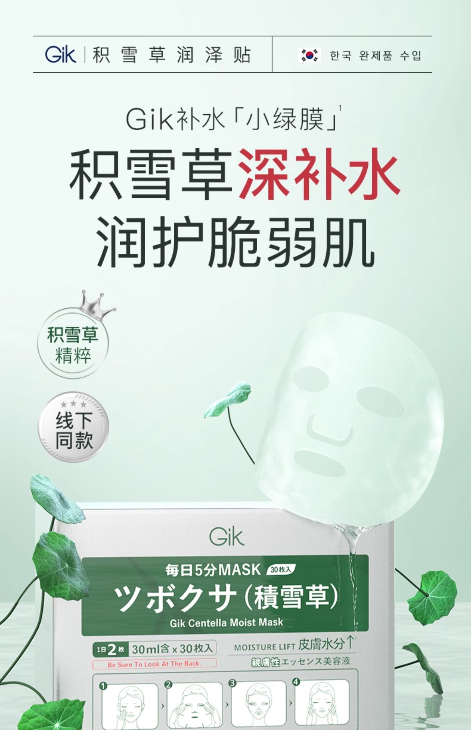 GIK 积雪草修复面膜 30ML*30片
