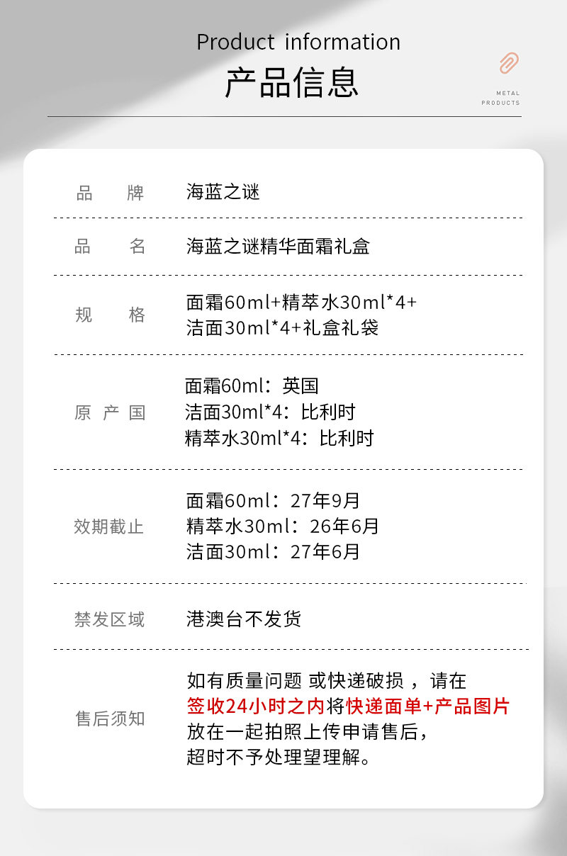 【限定福利】Lamer/海蓝之谜超值套组(面霜60ml+洁面30ml*4+精萃水30ml*4),加赠礼盒礼袋