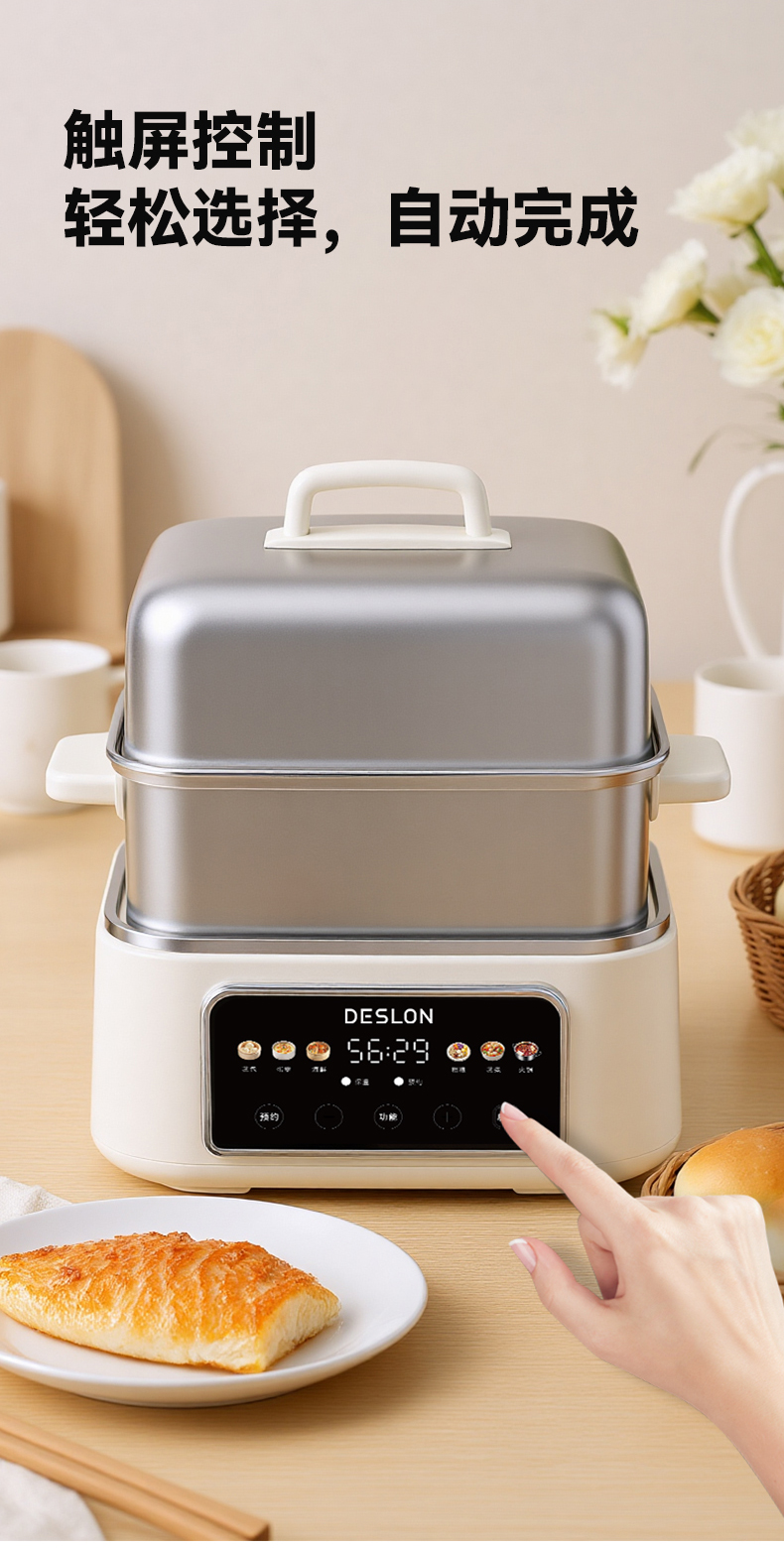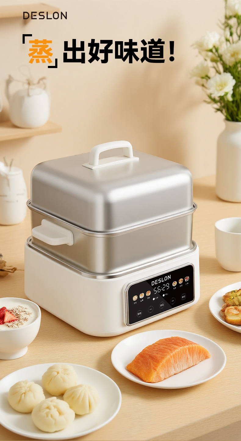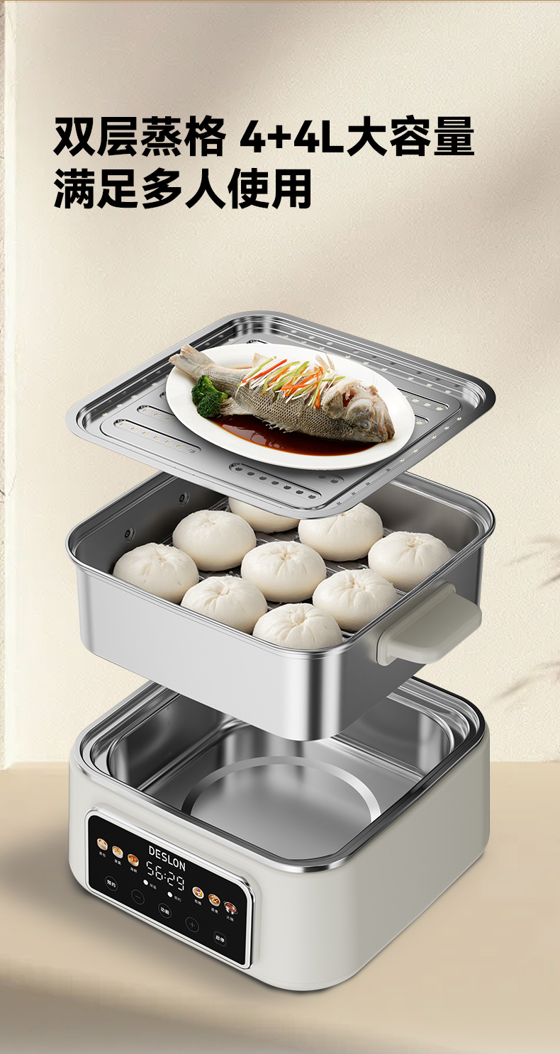 【DESLON德世朗不锈钢电蒸煮锅】蒸煮两用,厨房美食好帮手!