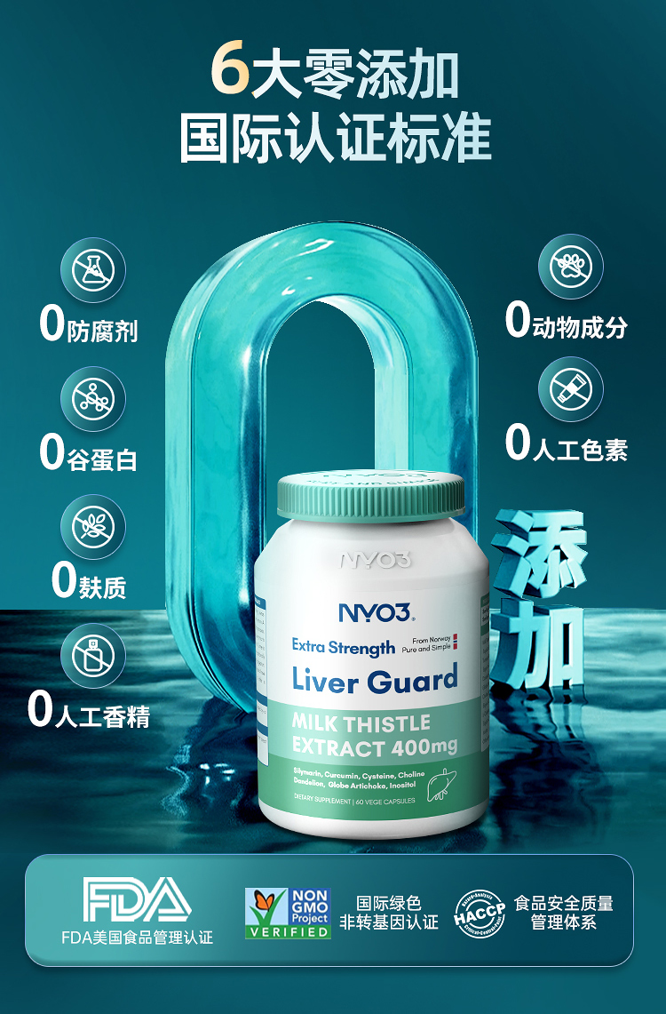 【跨境】NYO3跨境护肝片挪威进口140倍奶蓟草小绿盾水飞蓟素加班熬夜应酬保健60粒