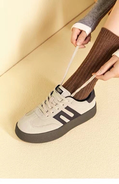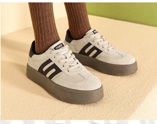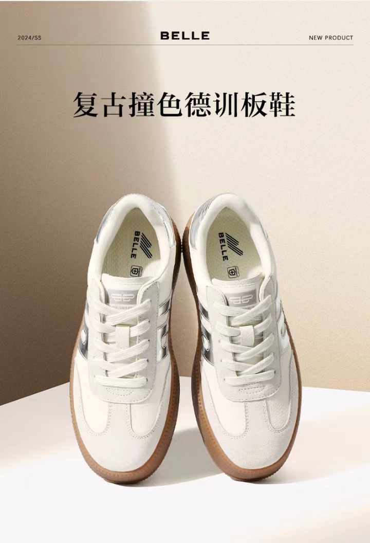 百丽复古德训鞋女2024年春款女鞋厚底撞色休闲鞋板鞋