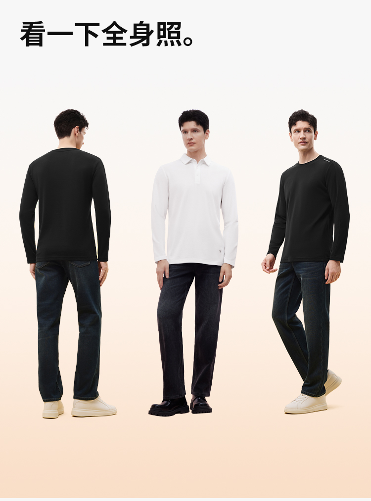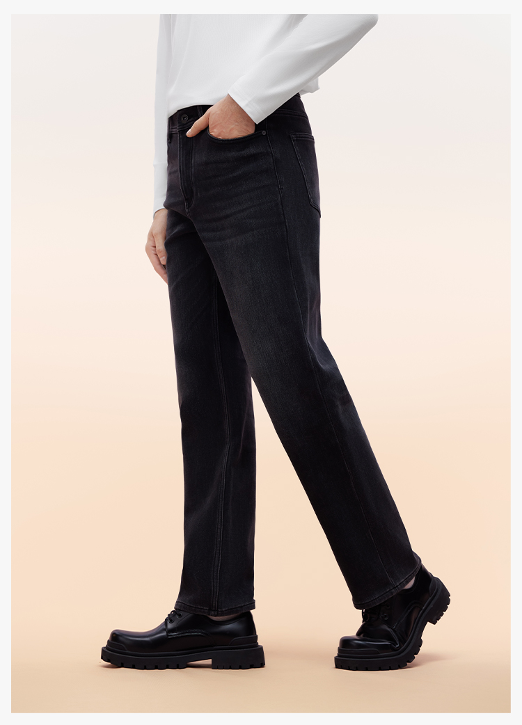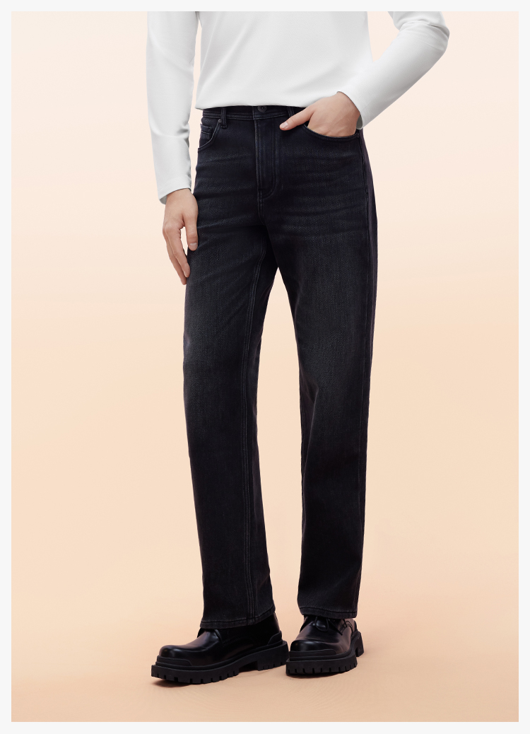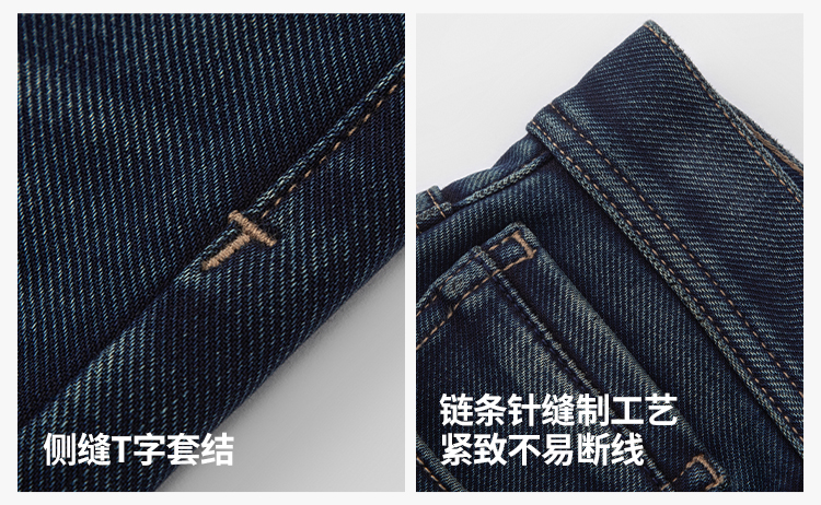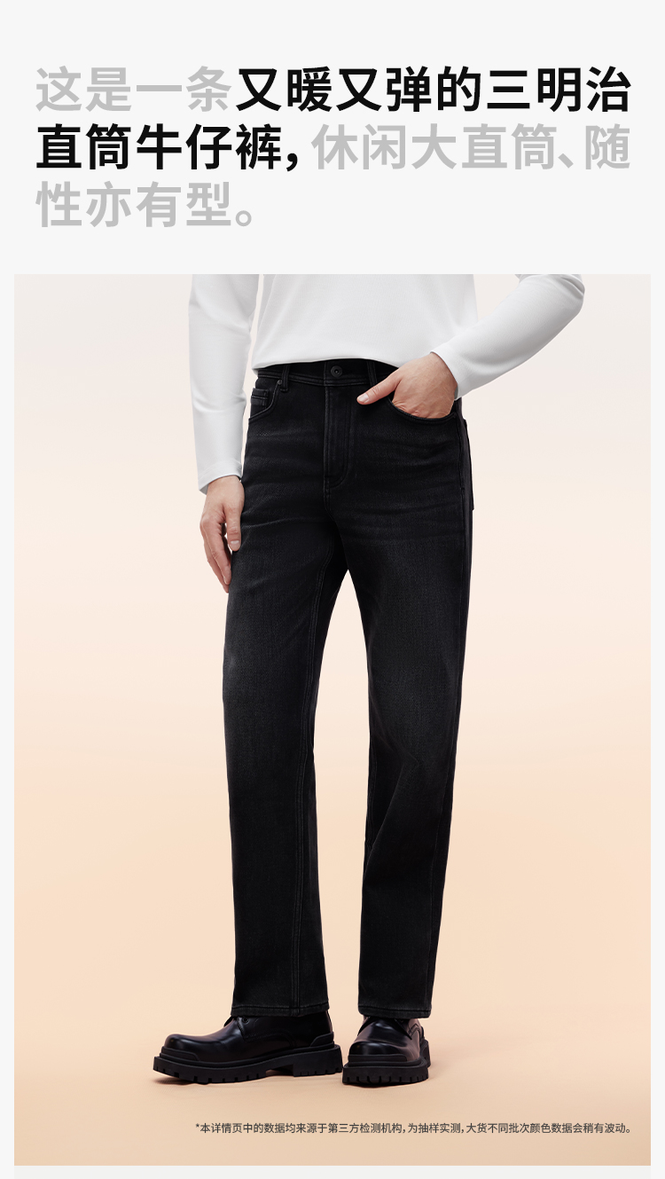 拇指白小T男士三明治直筒牛仔长裤