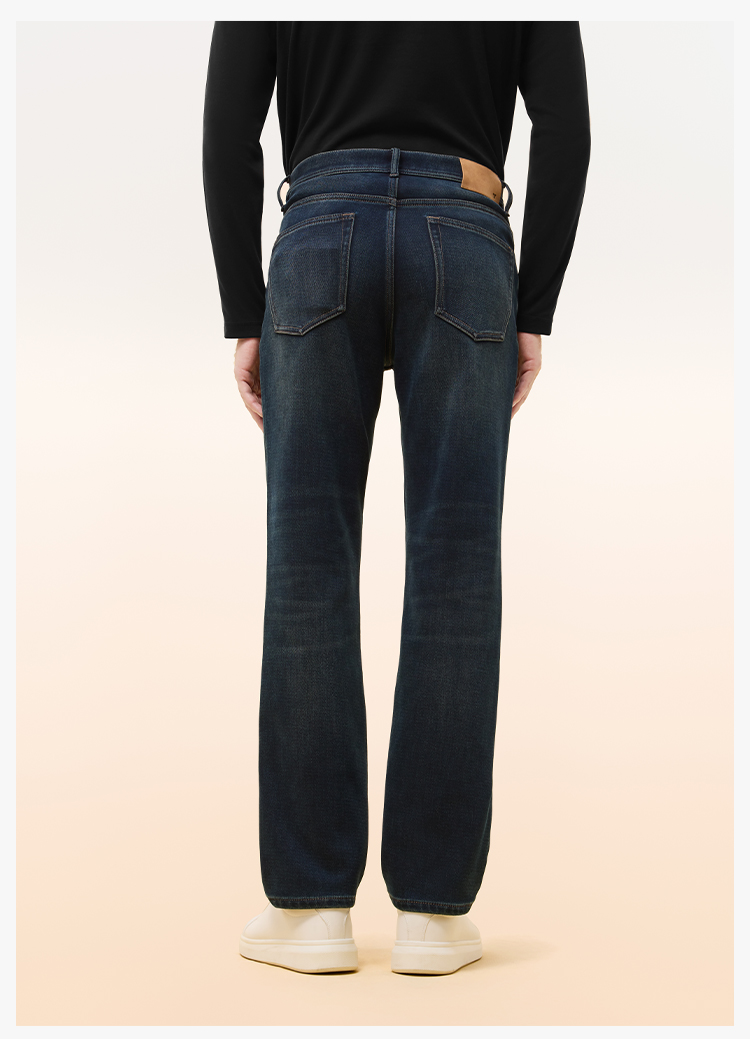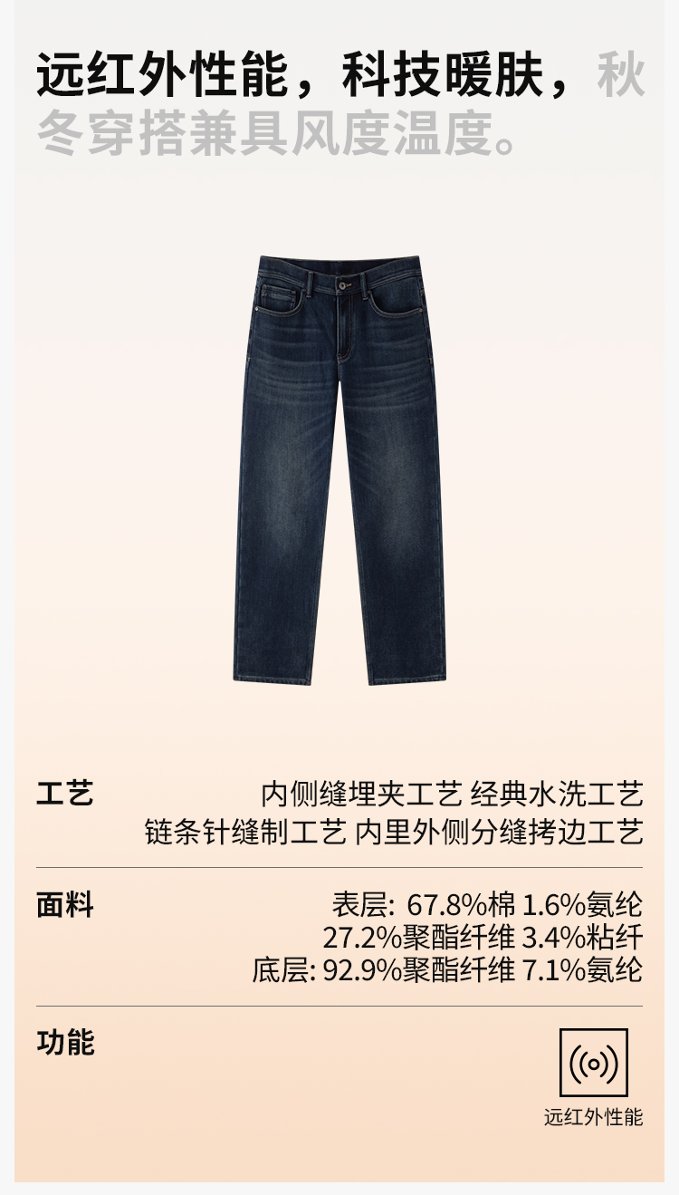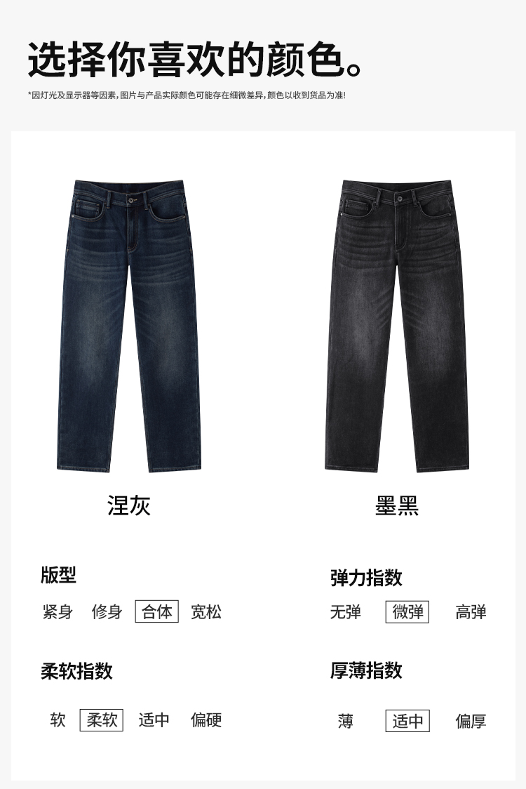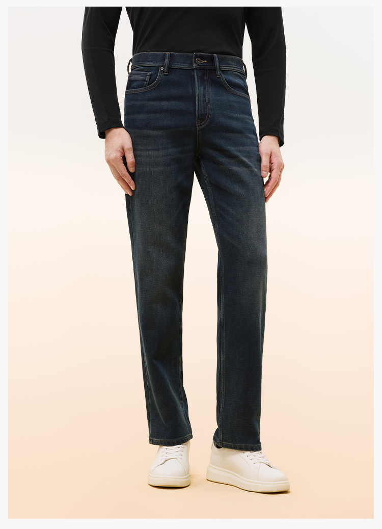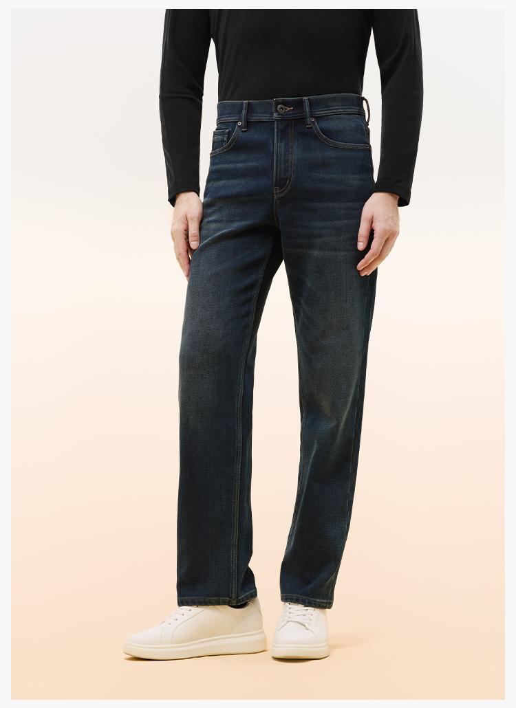 拇指白小T男士三明治直筒牛仔长裤