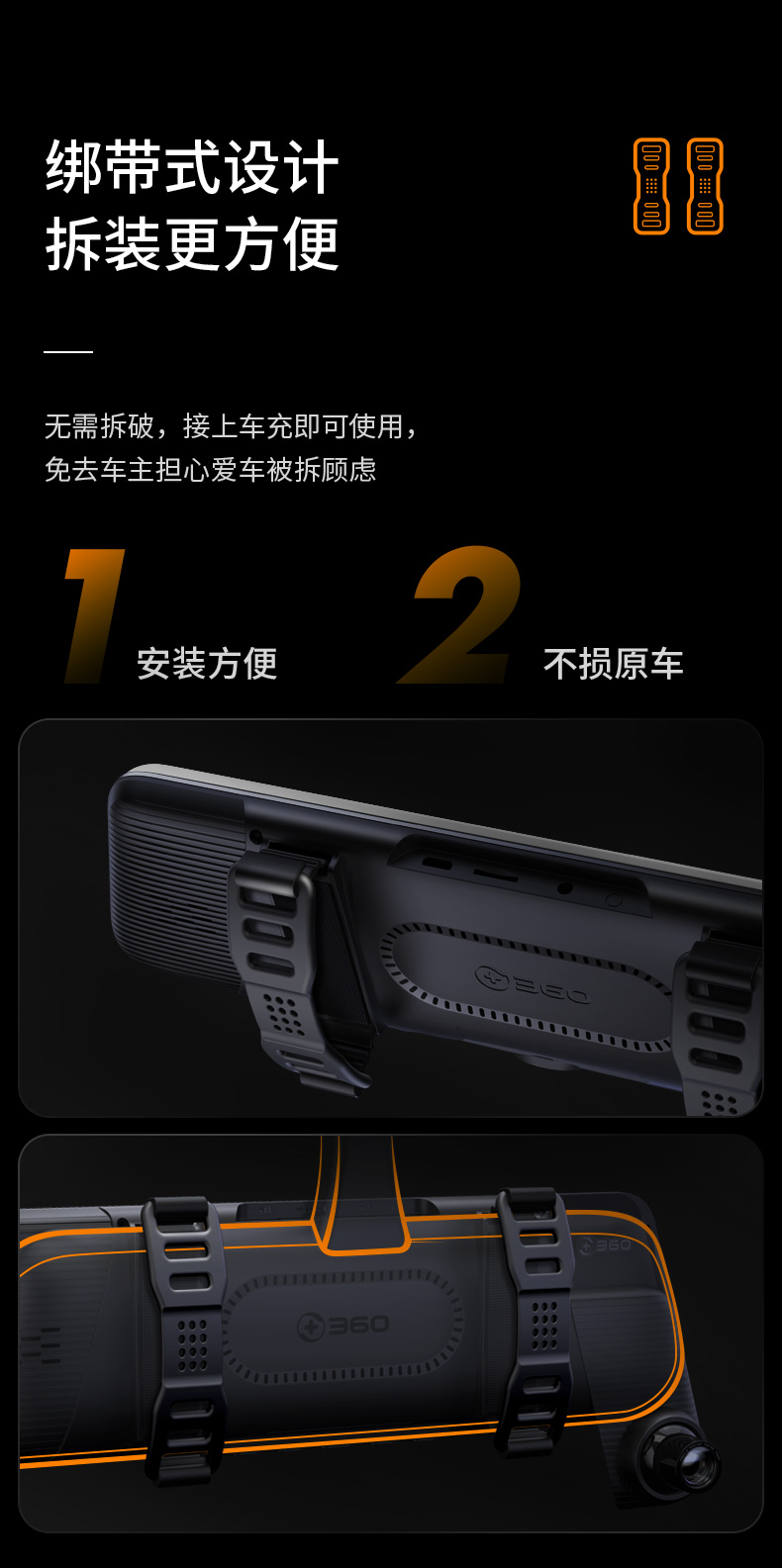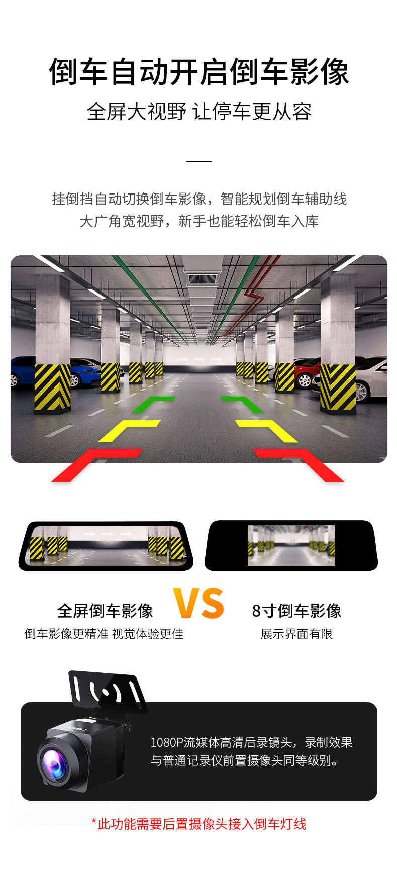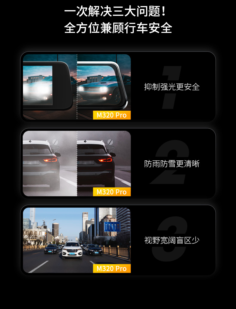 【采购】360行车记录仪M320 Pro 全屏流媒体后视镜记录仪 9.35英寸高清显示屏 前后高清双录 智能倒车辅助