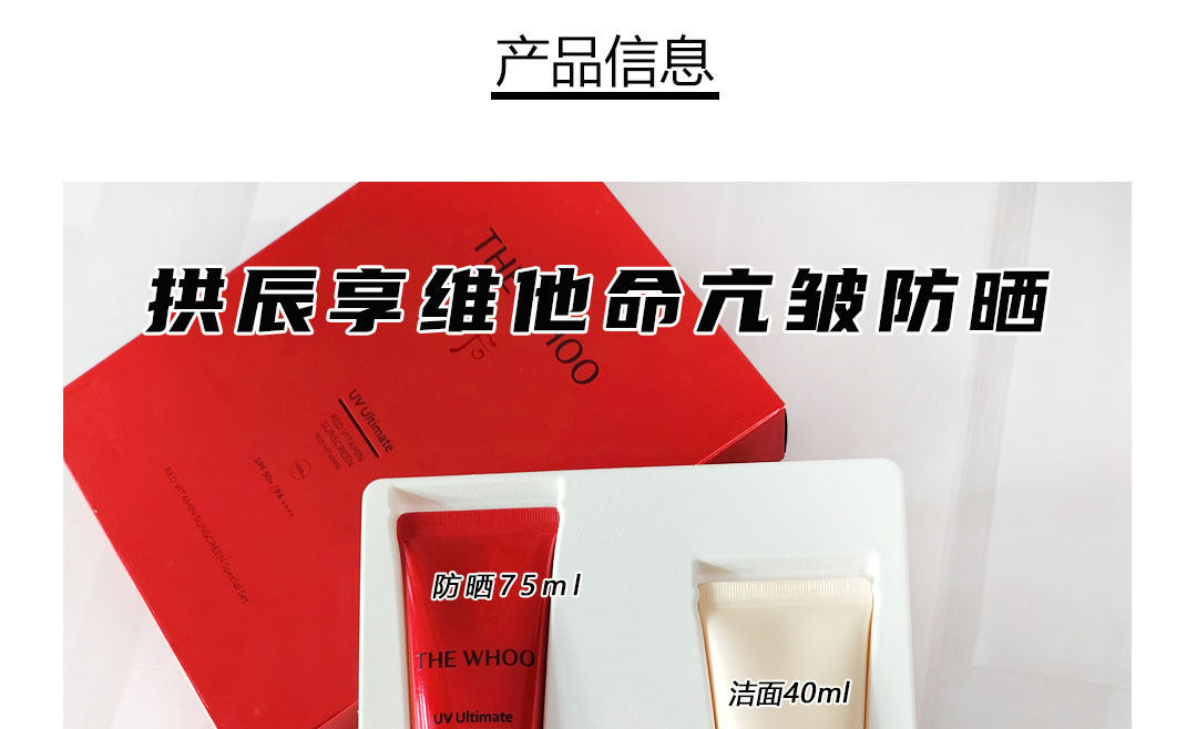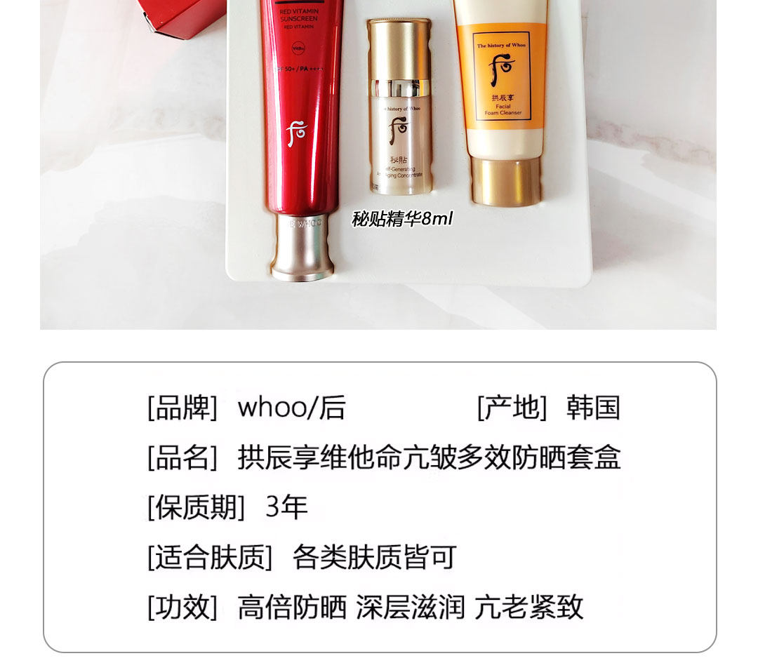 Whoo 后 拱辰享御阳维他命防晒霜三件套(防晒75ml+精华8ml+洁面40ml)