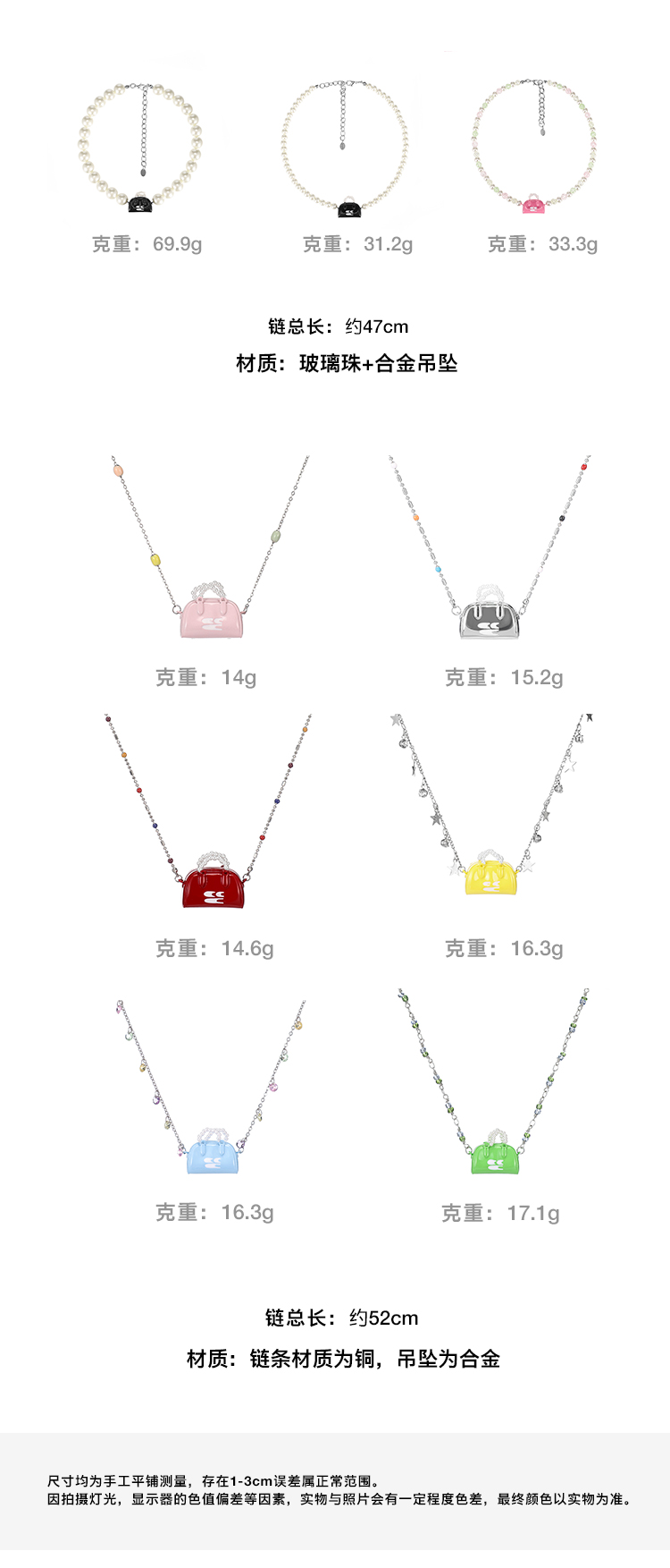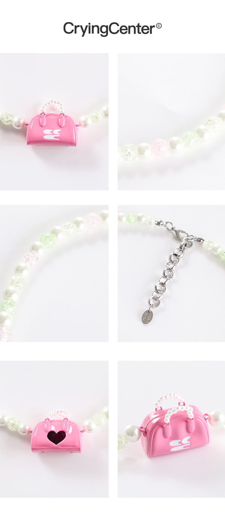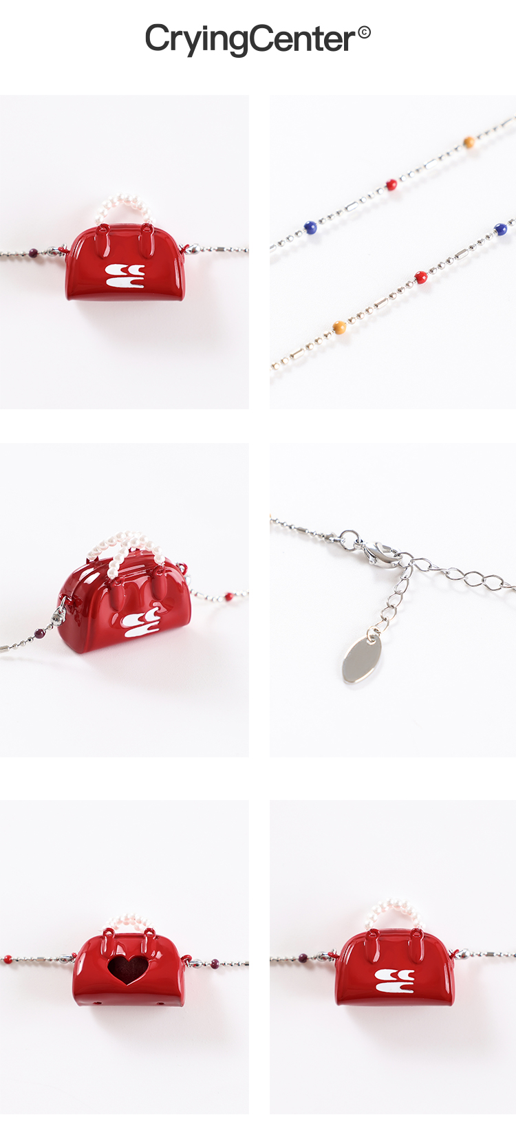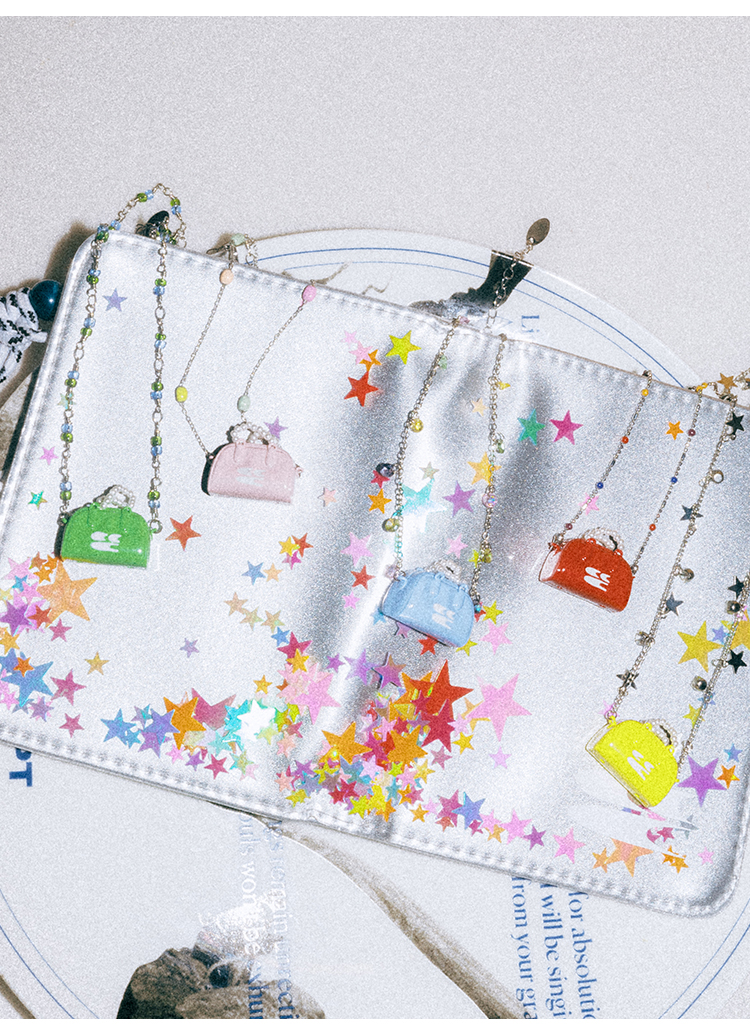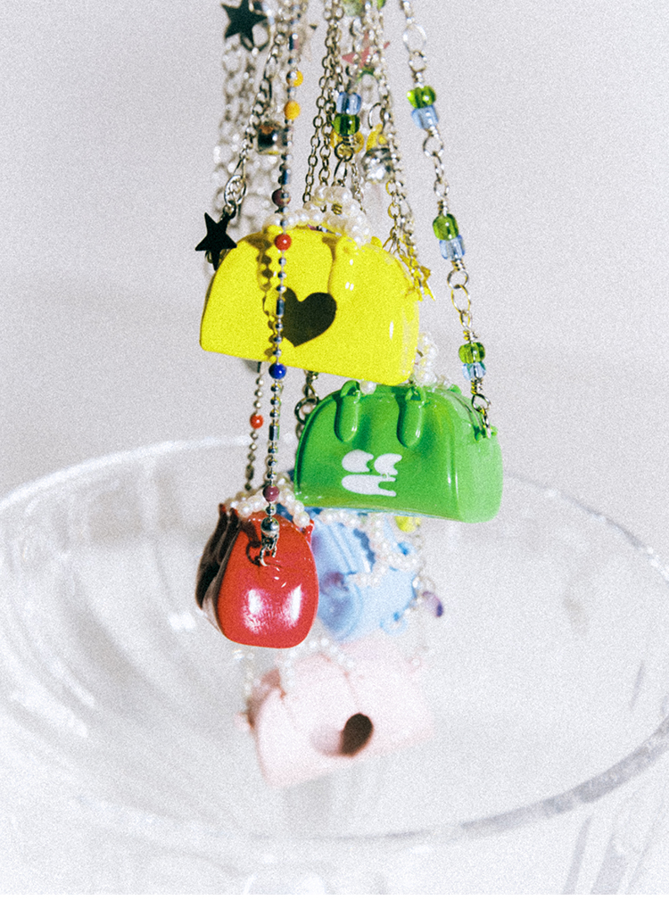 CryingCenter 夏日多巴胺彩豆珠珍珠mini波士顿手提包挂坠项链