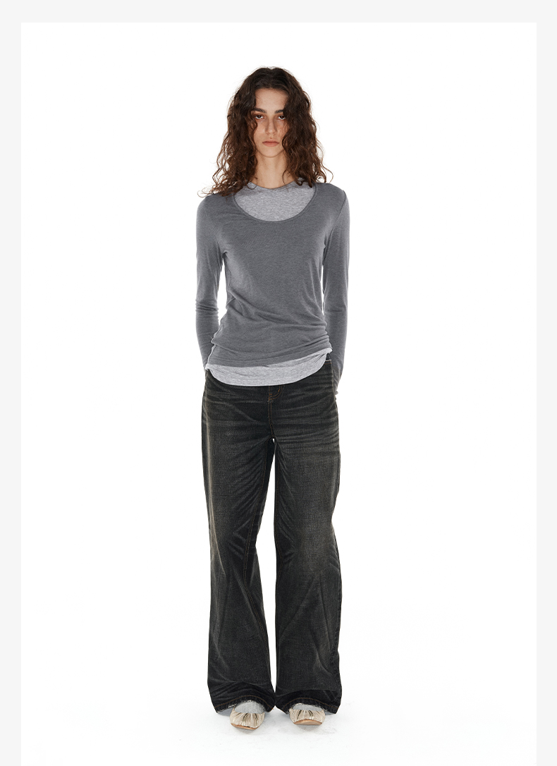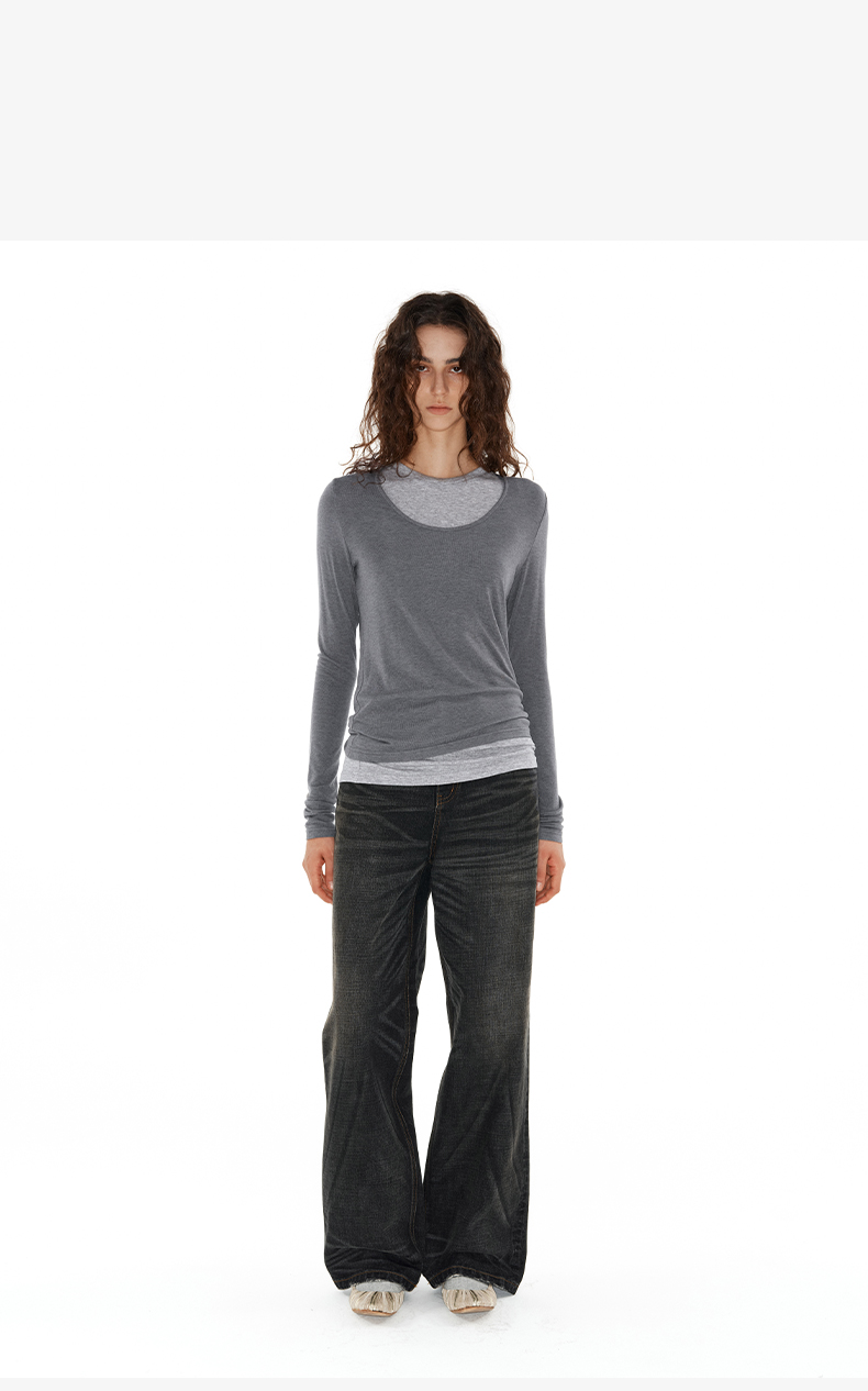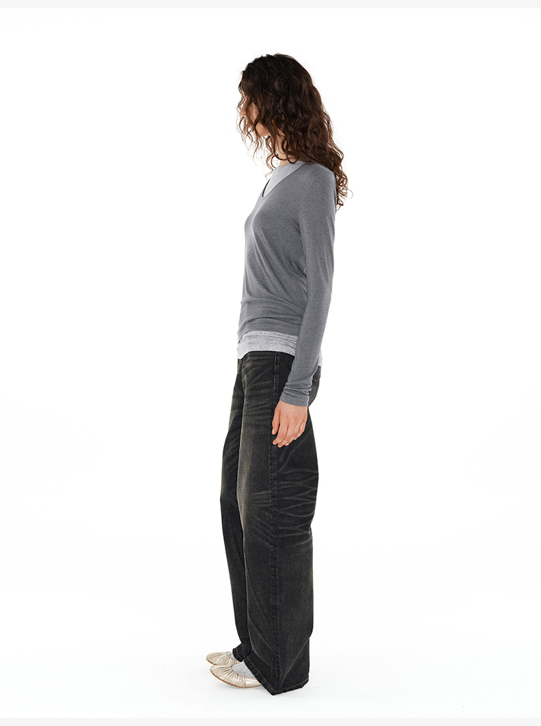 NUTH 深V领两穿宽松毛衣拼接假两件设计套头慵懒针织毛衣女