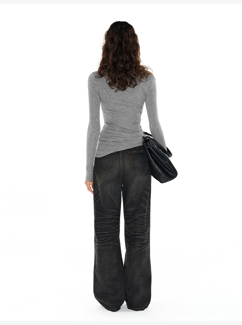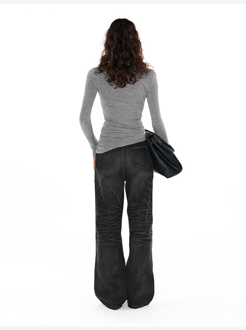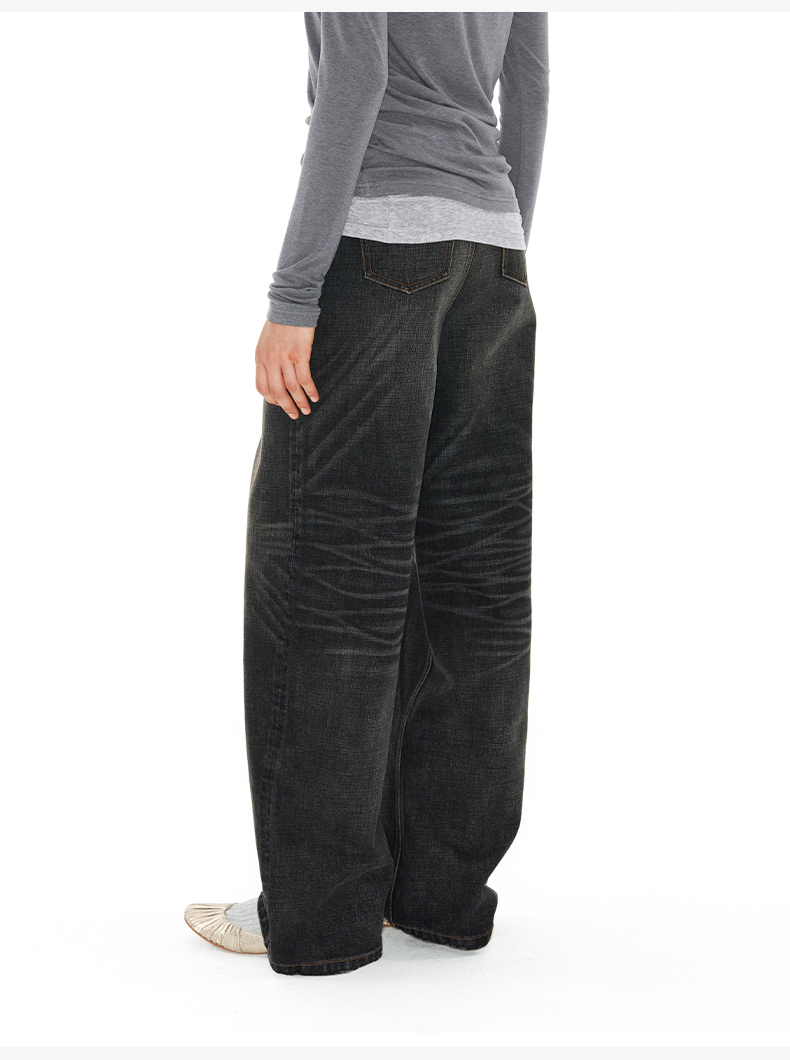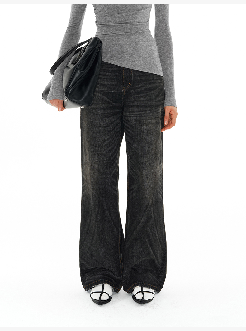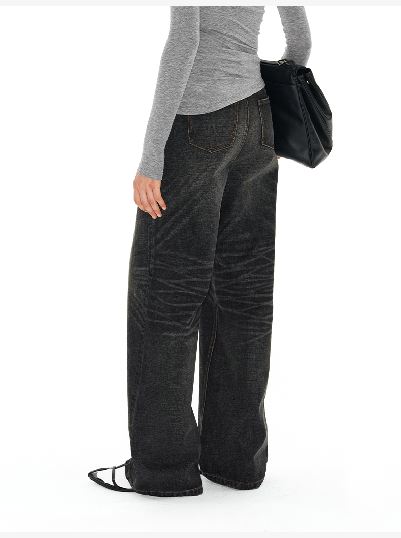 NUTH内华达水洗直筒牛仔裤女复古做旧手工猫须显瘦牛仔裤女