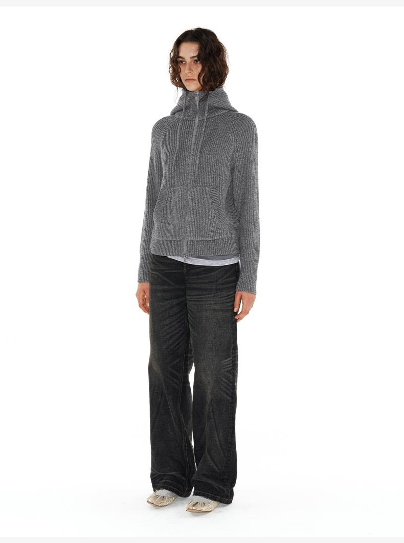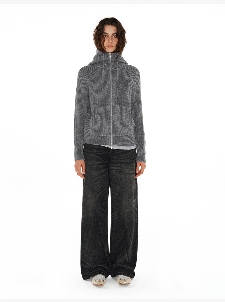 NUTH“凝聚空气”黑色宽松百搭oversize连帽卫衣宽松拉链厚外套(发货时间同步天猫)
