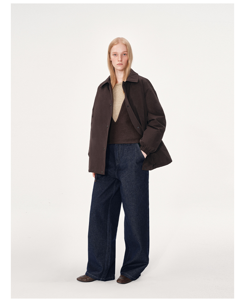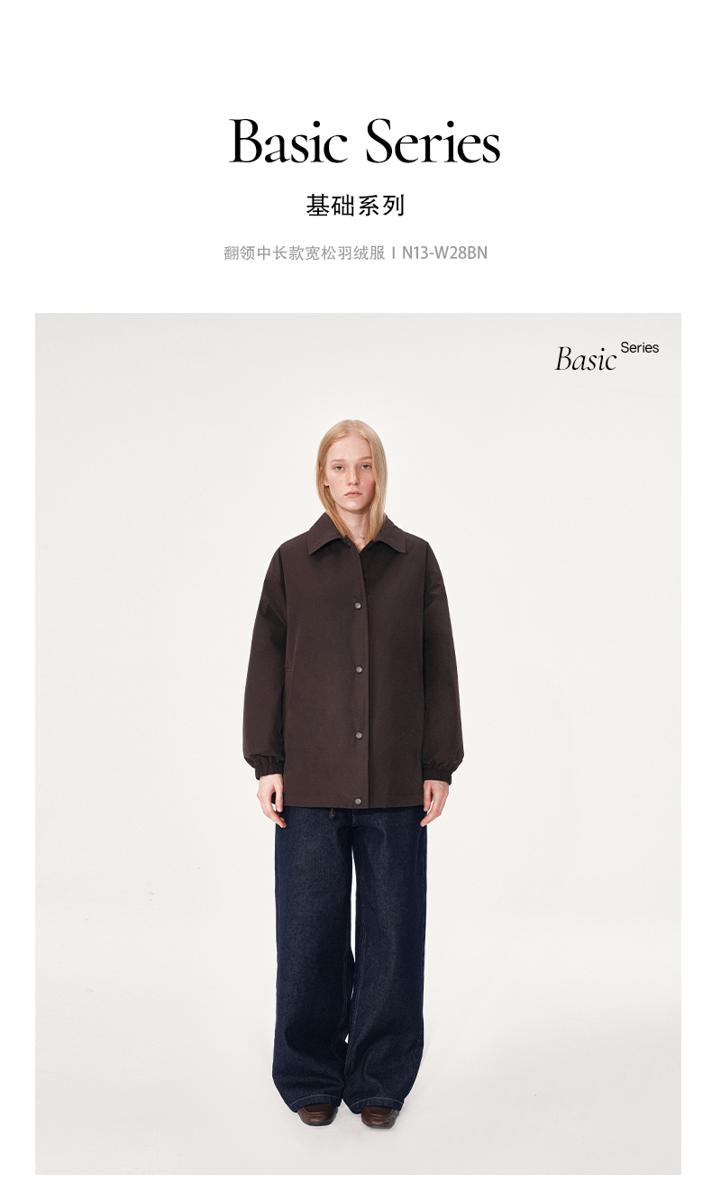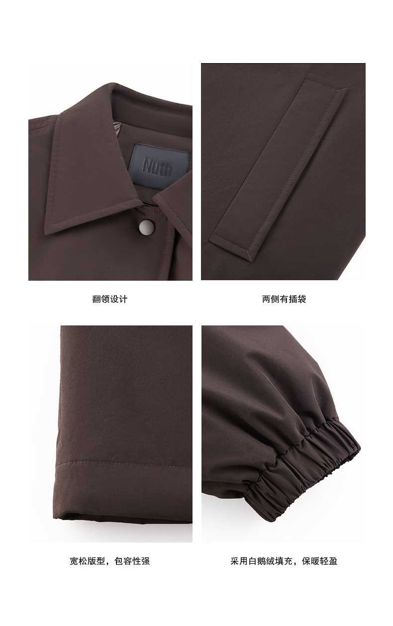 NUTH复古咖色宽松中长款羽绒服女 90白鹅绒(发货时间同步天猫)