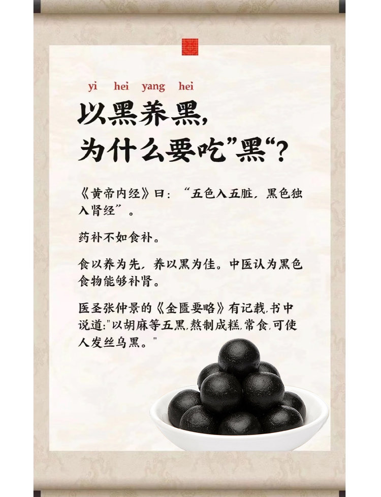 现代营养学也发现,黑色食物通常富含花青素、黑色素、铁、锌等微量元素,能够抗氧化、促进血液循环、滋养毛囊,从而改善白发、脱发等问题。