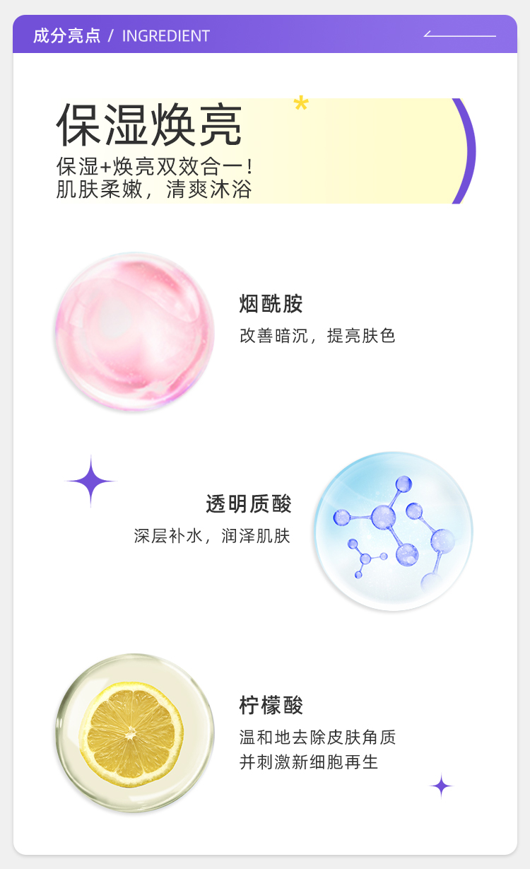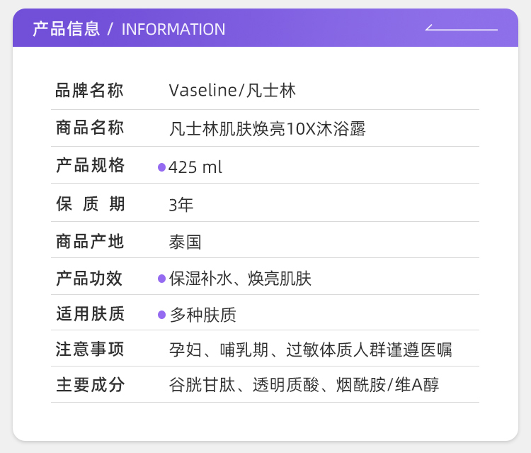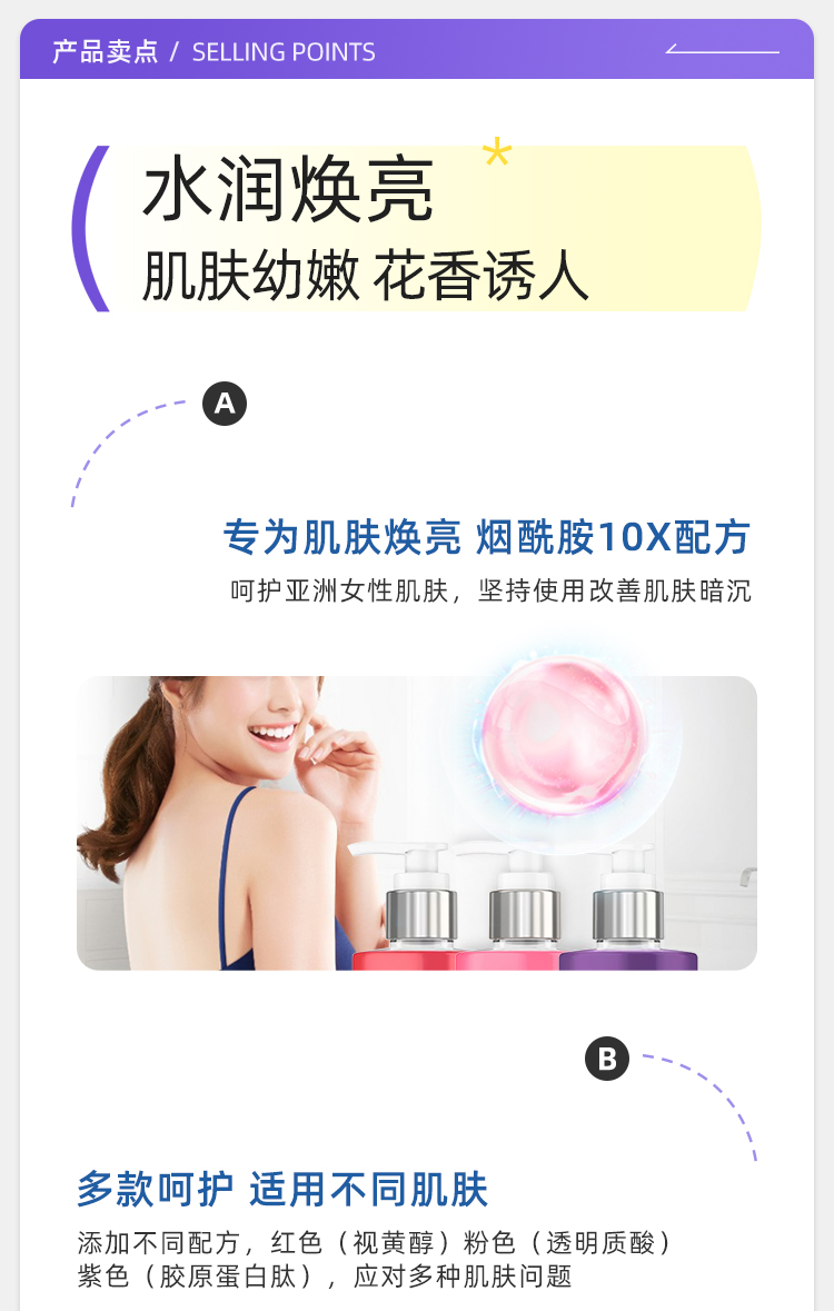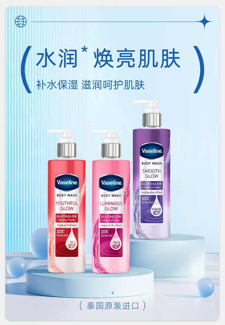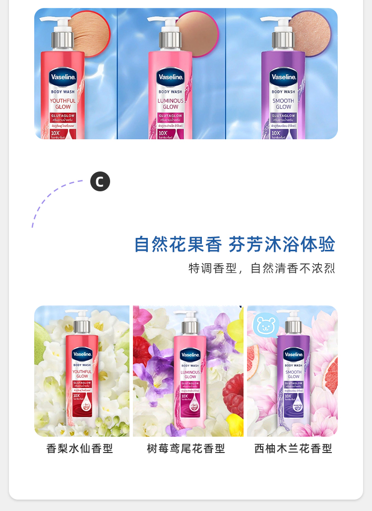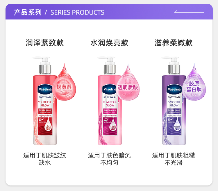 【保税仓】凡士林焕亮款柔嫩款紧致款保湿沐浴露粉色、紫色、红色425ml